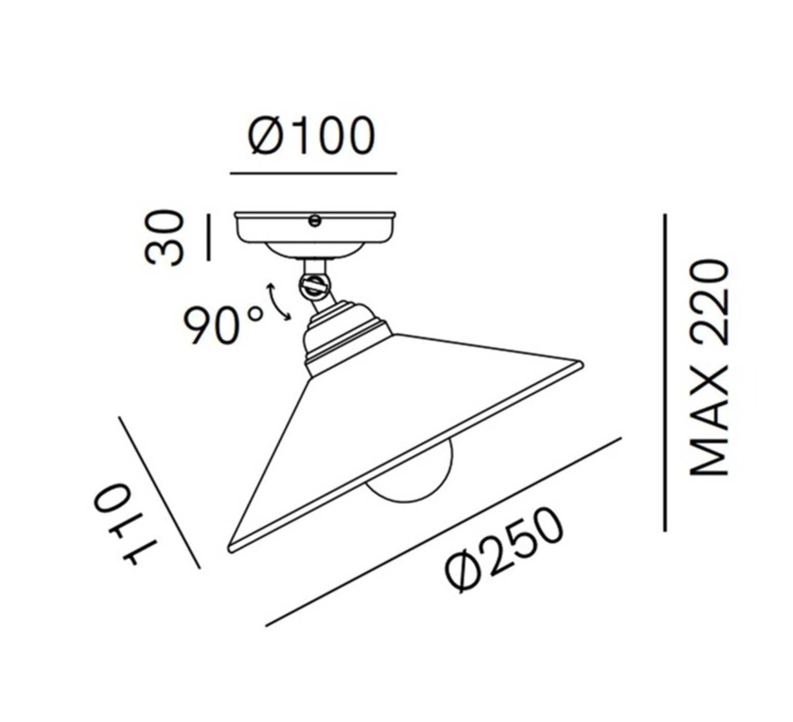 Sie hat einen Durchmesser von 25 cm und eine Höhe von 22 cm. Das Leuchtmittel ist nicht im Lieferumfang enthalten (1 x E27), aber als unverzichtbares Zubehör erhältlich.