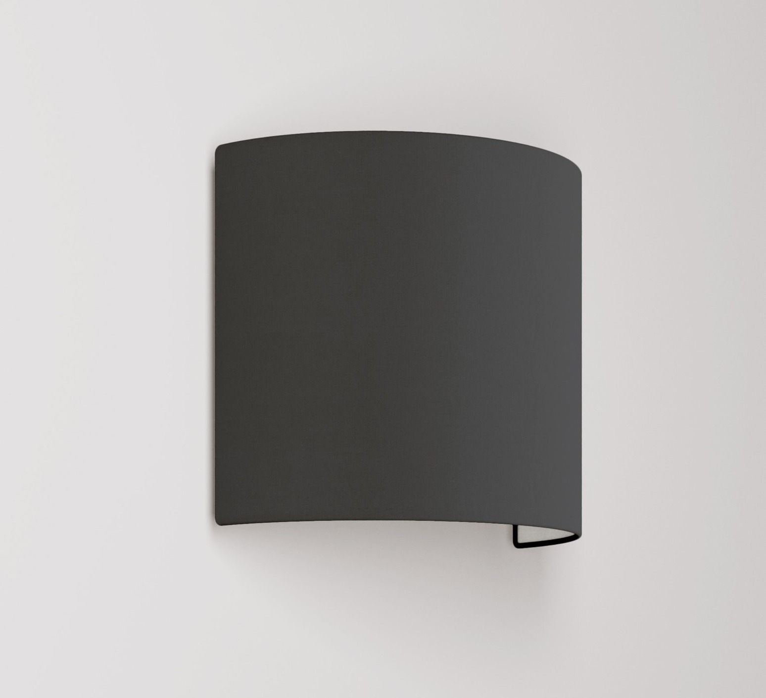 Der halbzylindrische Lampenschirm aus anthrazitfarbenem Stoff, der auf eine leichte Struktur gespannt ist, verbreitet ein weiches und warmes Licht, das ideal ist, um eine intime Atmosphäre in einem Wohnzimmer, einem Schlafzimmer oder einem Flur zu schaffen. Sein Farbton passt perfekt zu modernen oder natürlichen Inneneinrichtungen und verleiht einen Hauch von Sanftheit und Harmonie. Die Wandleuchte Ventola, die einzeln oder als Paar installiert werden kann, besticht durch ihr schlichtes Aussehen und ihre Fähigkeit, Räume zu veredeln, ohne sie zu beschweren.