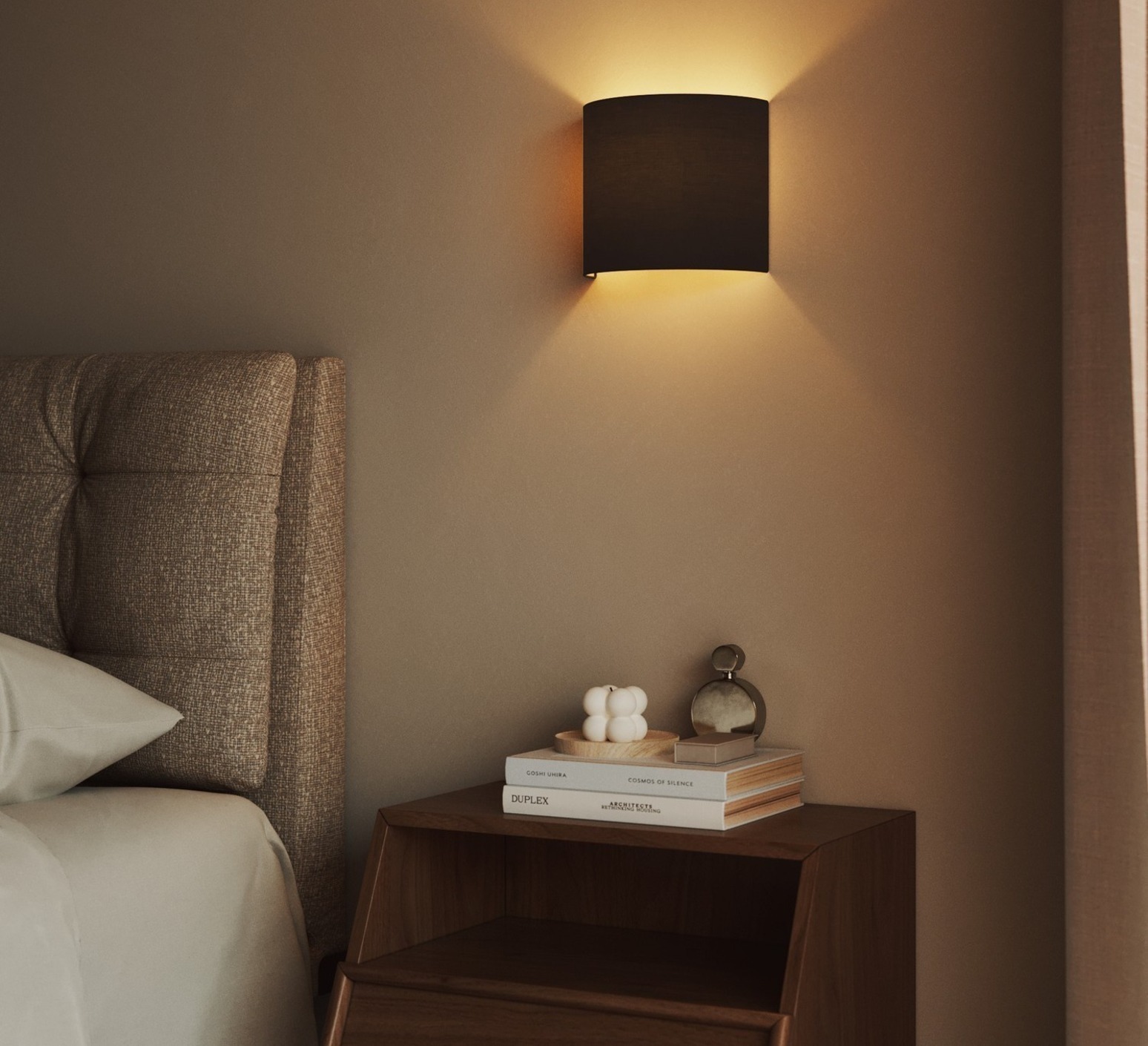 Die Wandleuchte ist mit einer E27-Fassung ausgestattet und benötigt eine LED-Glühbirne (max. 4 W, nicht im Lieferumfang enthalten). Sie bietet eine indirekte Beleuchtung, die nicht dimmbar ist, aber dennoch ein gleichmäßiges und umhüllendes Licht garantiert. Der Lampenschirm aus 100% Baumwolle, der auf selbstlöschendem PVC aufgebracht ist, bietet Sicherheit und Haltbarkeit. Jedes Stück wird auf Bestellung handgefertigt, wobei die Produktionszeit bis zu 10 Werktage beträgt.
