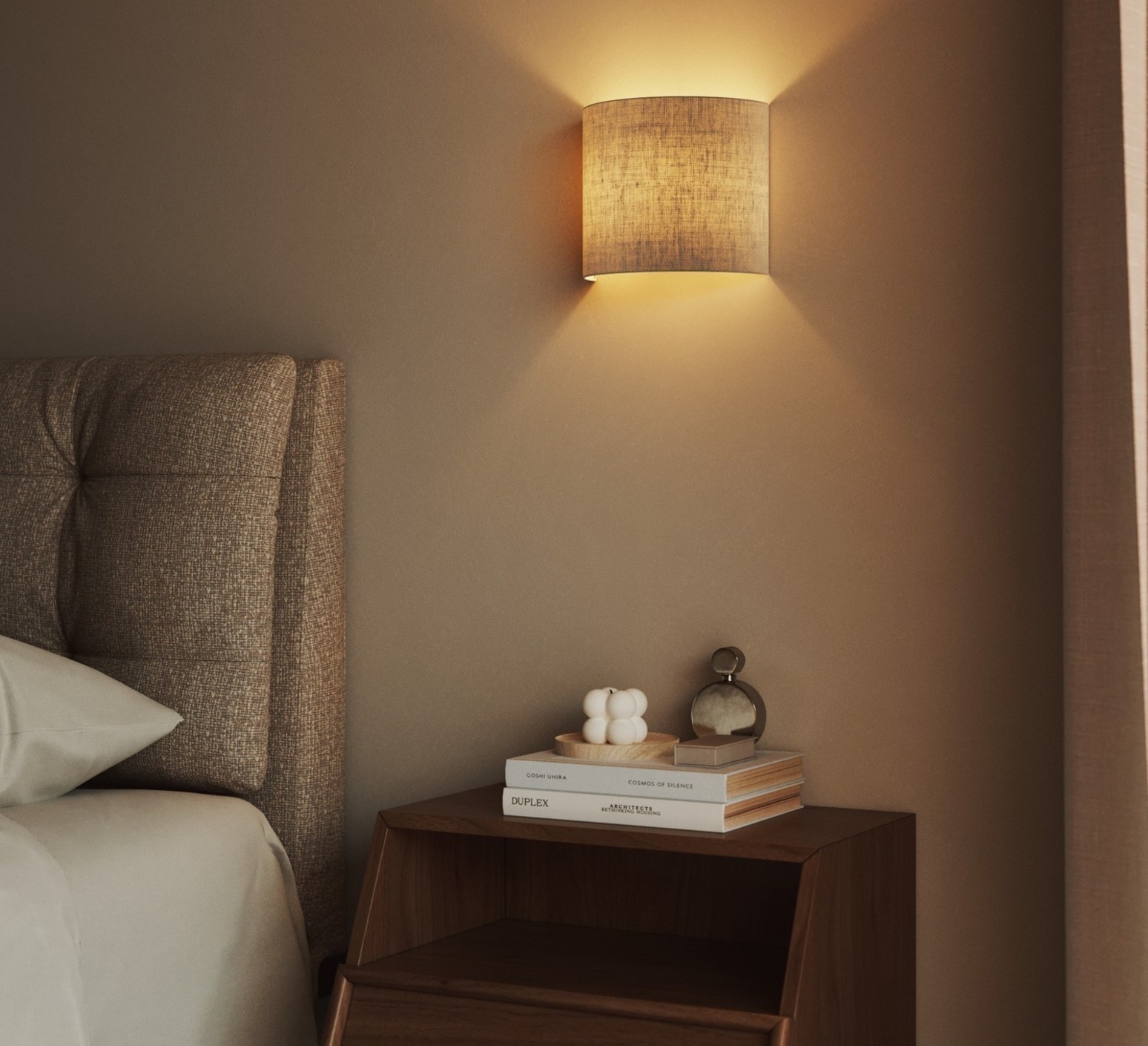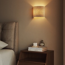 Die Wandleuchte ist mit einer E27-Fassung ausgestattet und benötigt eine LED-Glühbirne (max. 4 W, nicht im Lieferumfang enthalten). Sie bietet eine indirekte Beleuchtung, die nicht dimmbar ist, aber dennoch ein gleichmäßiges, umhüllendes Licht garantiert. Der Lampenschirm aus 100% Baumwolle, der auf selbstlöschendem PVC aufgebracht ist, bietet Sicherheit und Haltbarkeit. Jedes Stück wird auf Bestellung handgefertigt, wobei die Produktionszeit bis zu 10 Werktage beträgt.