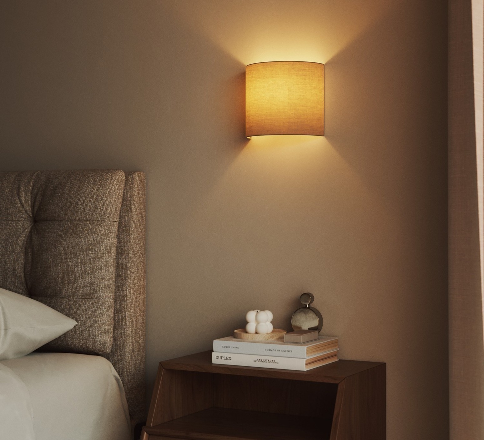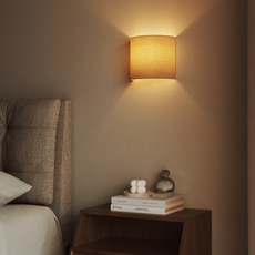 Die Wandleuchte ist mit einer E27-Fassung ausgestattet und benötigt eine LED-Glühbirne (max. 4 W, nicht im Lieferumfang enthalten). Sie bietet eine indirekte Beleuchtung, die nicht dimmbar ist, aber dennoch ein gleichmäßiges, umhüllendes Licht garantiert. Der Lampenschirm aus 100% Baumwolle, der auf selbstlöschendem PVC aufgebracht ist, bietet Sicherheit und Haltbarkeit. Jedes Stück wird auf Bestellung handgefertigt, wobei die Produktionszeit bis zu 10 Werktage beträgt.
