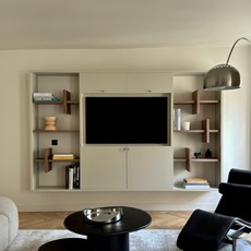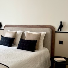 An enveloping atmosphere is created right from the entrance. Integrated storage and custom concealed access are designed to offer functionality and visual lightness. The large living room, open to the kitchen, is in line with this aesthetic continuity. Conceived as a place for everyday conviviality, it combines generous volumes, sober colors and precise finishes. The master suite is a true cocoon, with soft tones and strong lines. The balance of materials and attention to detail create an intimate, serene atmosphere.