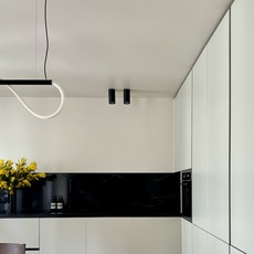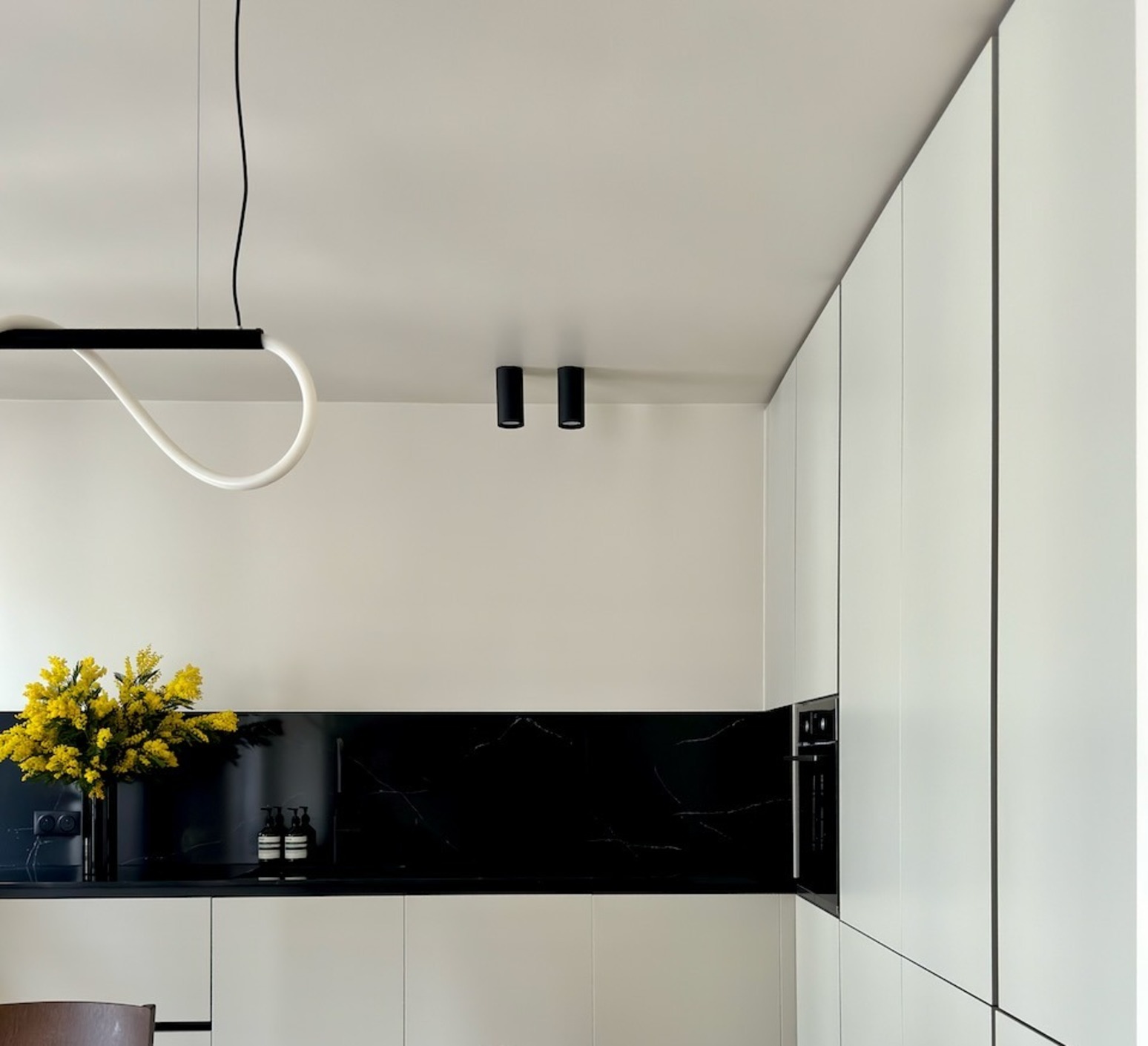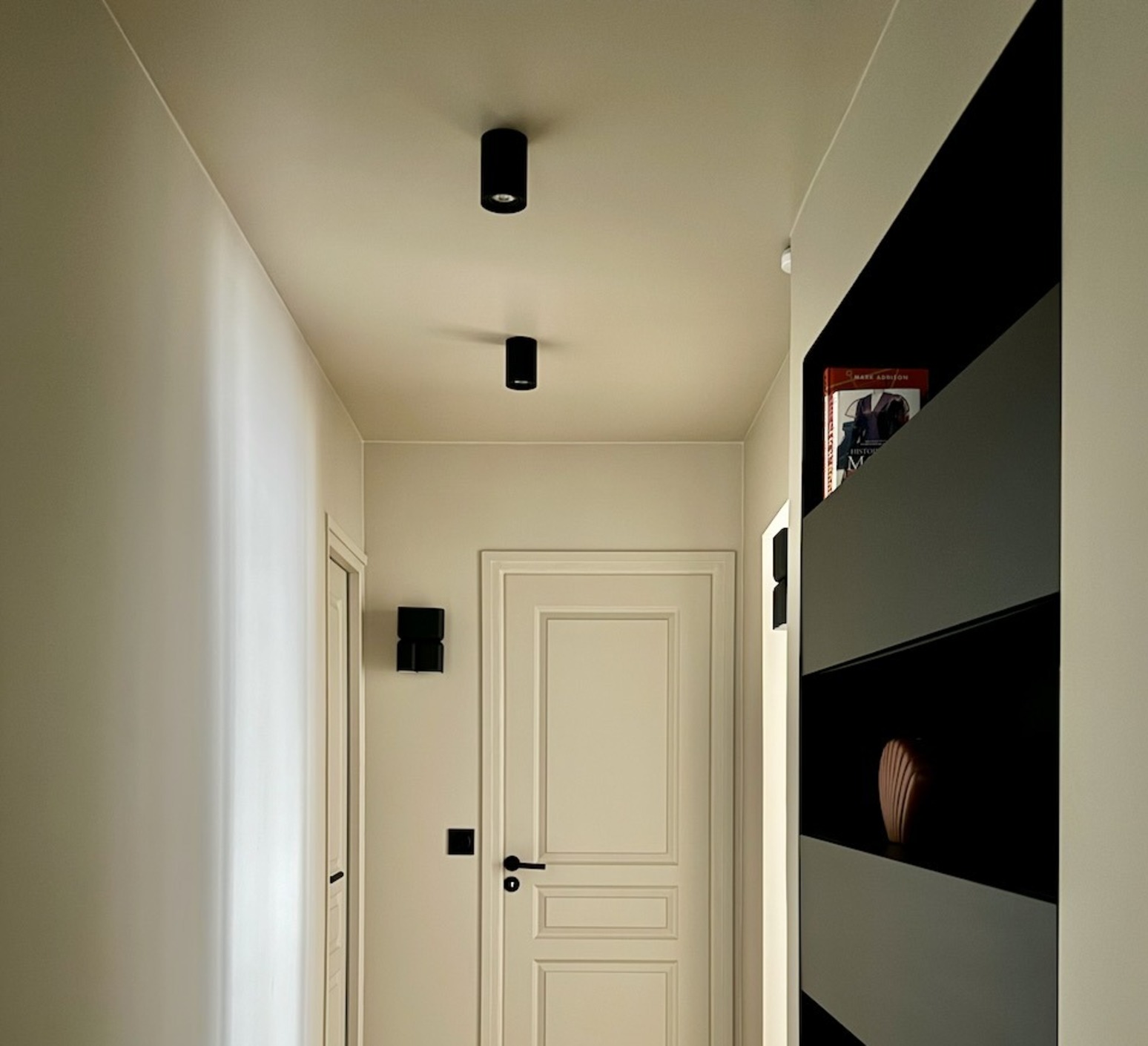 As for the lighting fixtures, they are both graphic and functional, providing well-thought-out illumination in every room of this apartment.