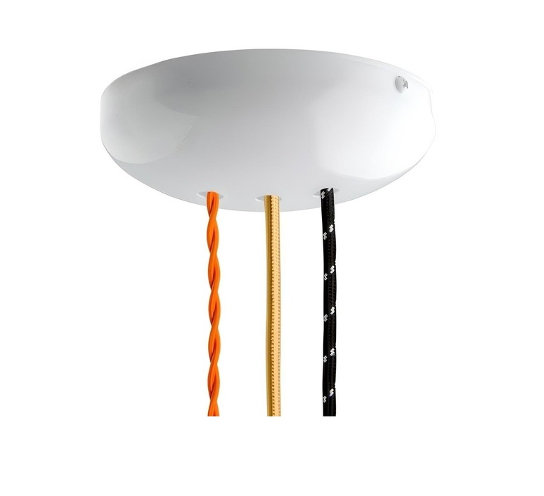 A ceiling rose conceals the electrical wires coming out of the wall or ceiling and attached to the luminaire. This model comes with three voltage reducers for the cables.