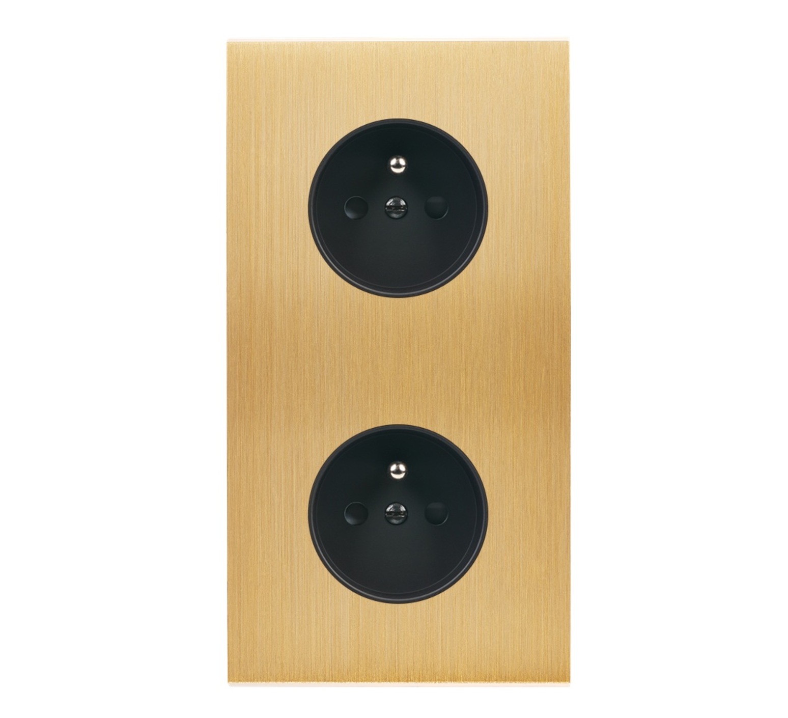 Faceplate, Confidence, Double vertical, Brushed brass, Socket-2P+T x2, W8cm, H15,1cm - Modelec