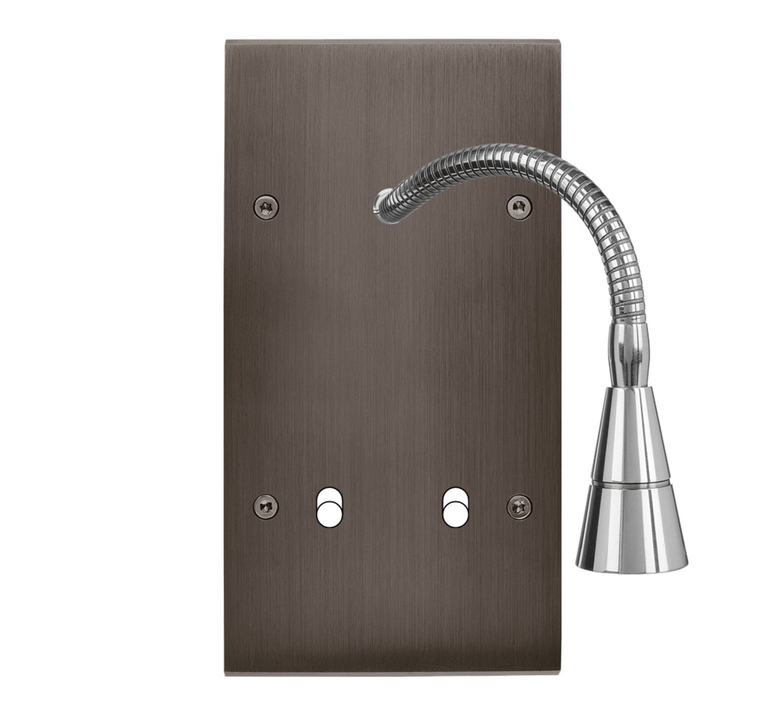 Faceplate, Confidence, Double vertical, Gun barrel, Thin flexible reading light 30cm, Switch x2, Screw on, L8cm, H15,1cm - Modelec