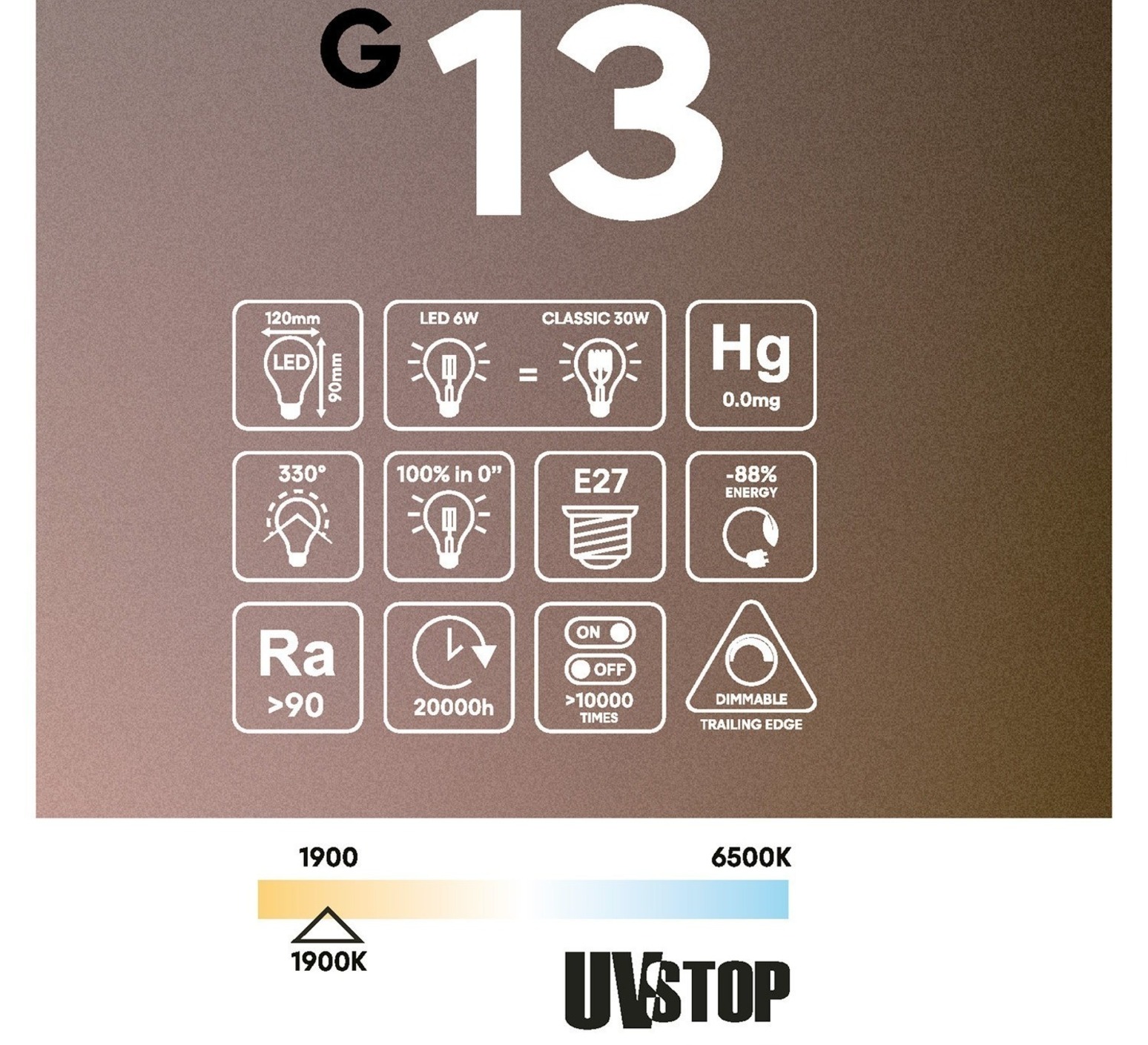 The G13 bulb is much more than a simple light source: it's a design object in its own right, conceived to transform light into a graphic element.