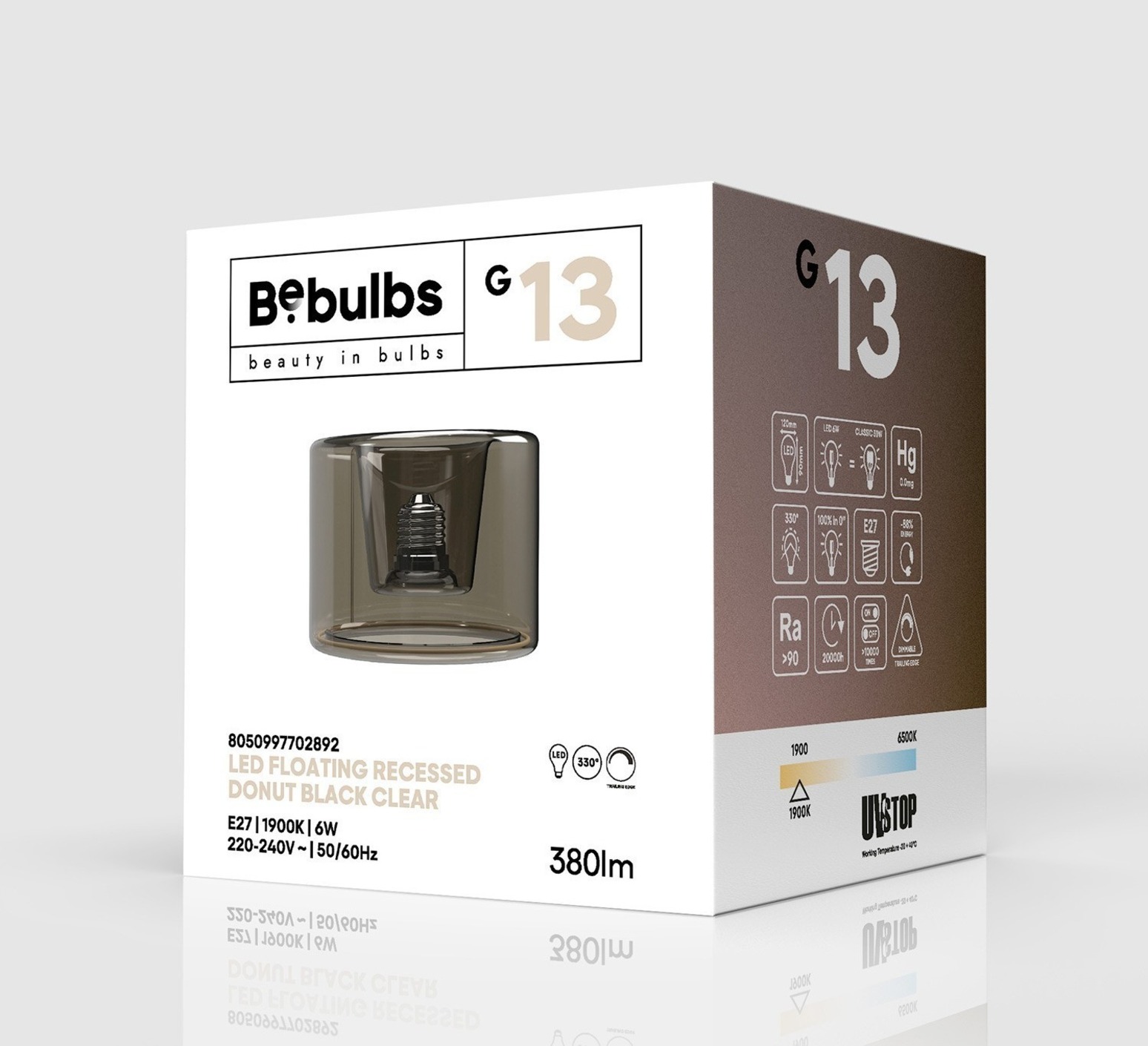 LED Bulb, E27, Ghost Line Recessed Donut G13, smoked, dim. 6W, 1900K, 380 lm, Ø12cm, H9cm - Creative Cables