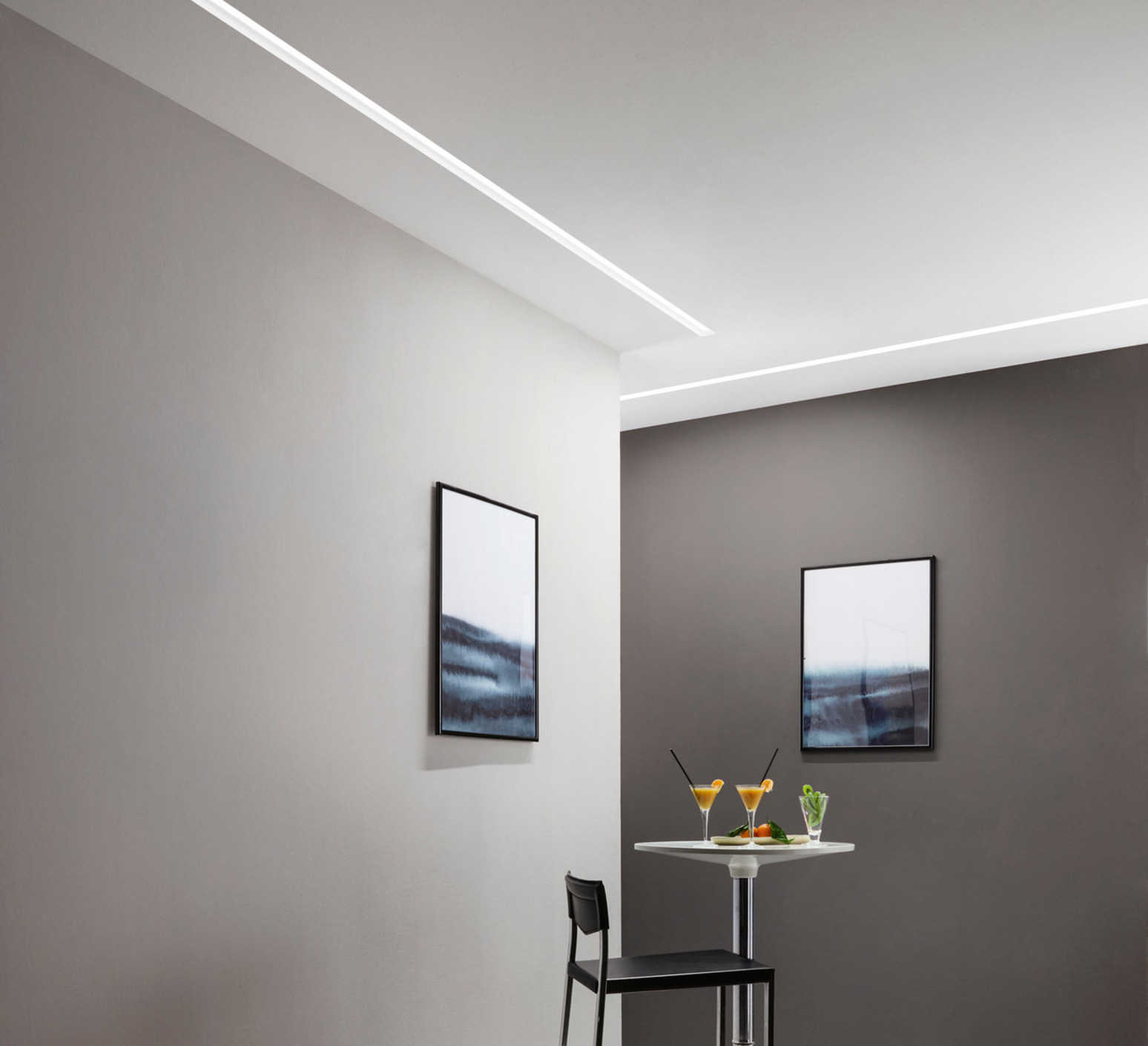 Finished in white, the Wing profile has a clean, discreet line that blends perfectly with plasterboard ceilings and walls. Its flush-mounted design creates elegant, continuous lighting effects, ideal for highlighting architecture, structuring a space or bringing a soft, controlled ambience to a living room, corridor or professional area.
