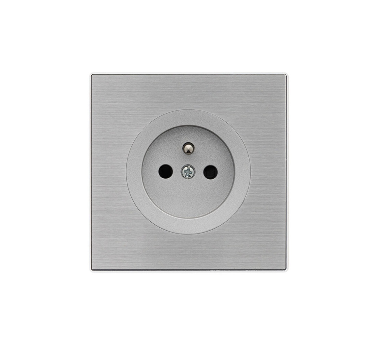 Socket, DOM, Single, Brushed aluminum, PC-Socket x1, L8,6cm, H8,6cm - Fontini