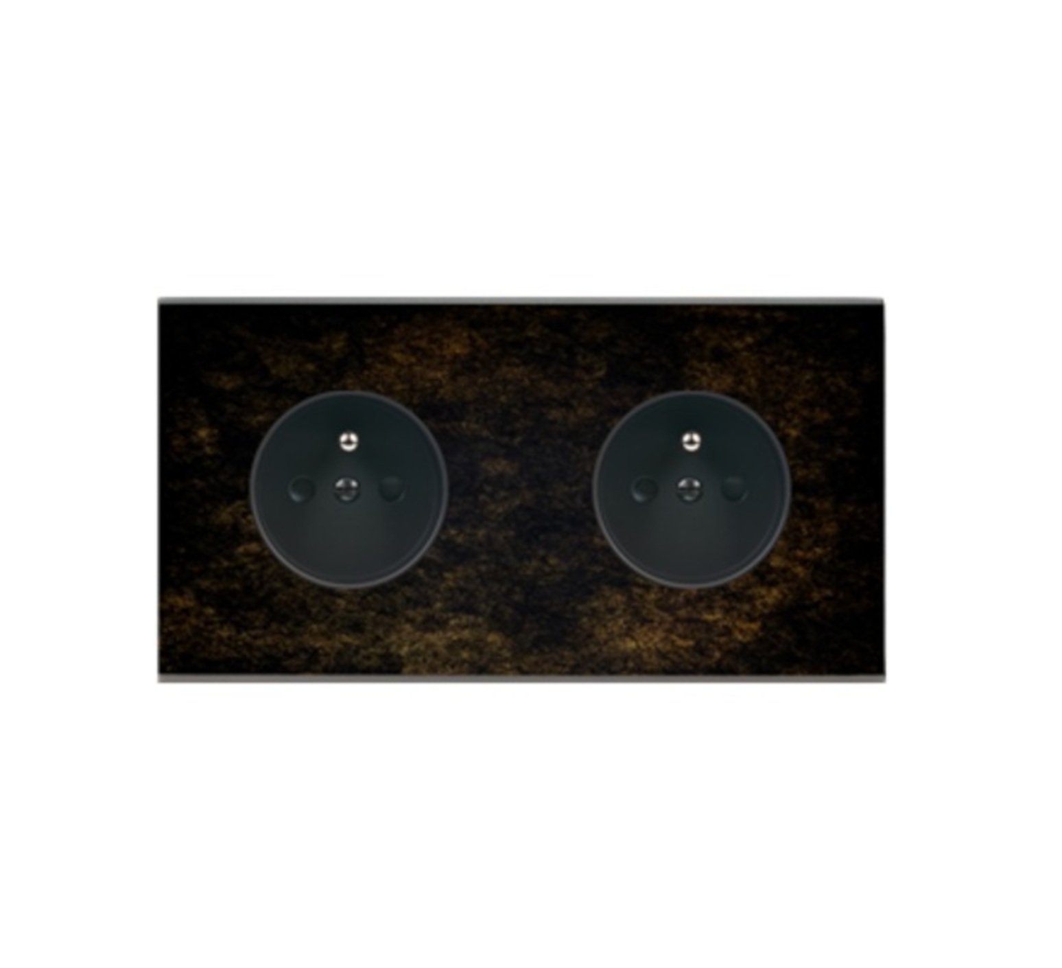 Socket, Fascination, Double horizontal, Nox, Prise-2P+T x2, Black, L15,1cm, H8cm - Modelec