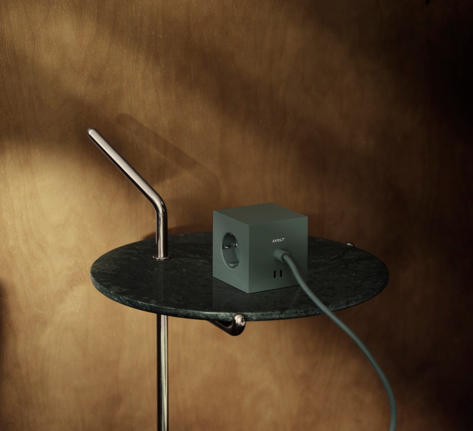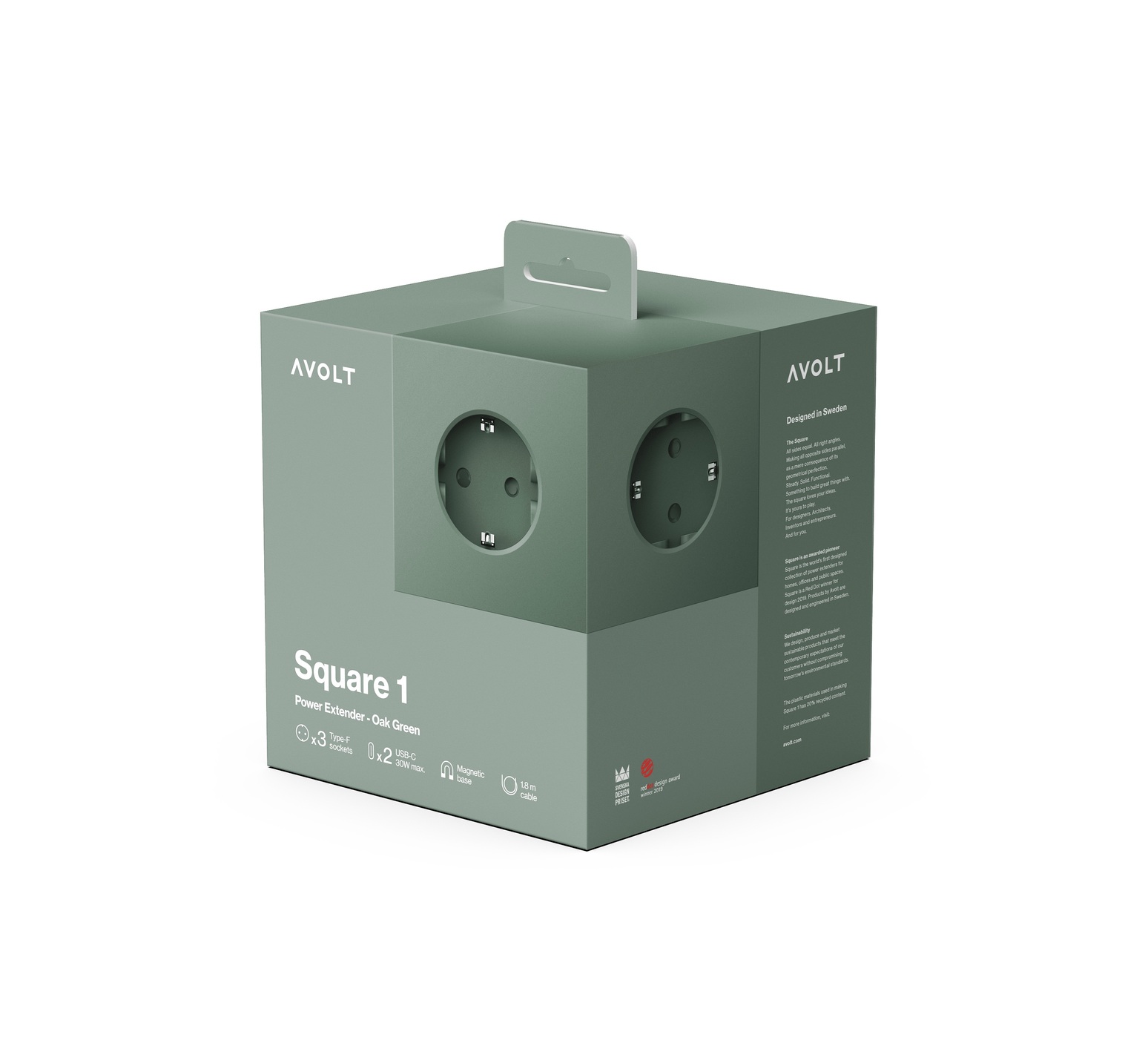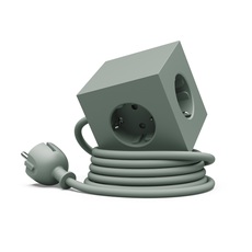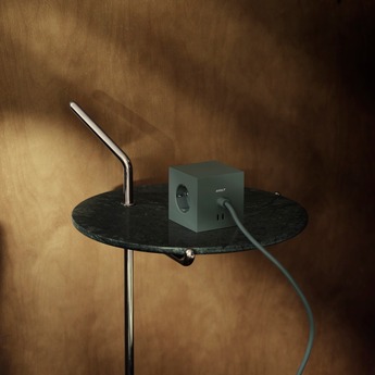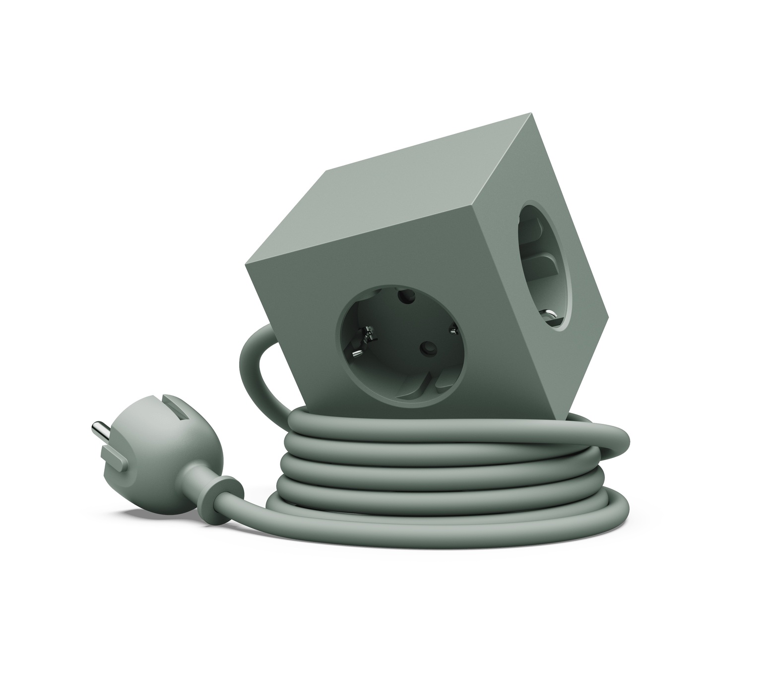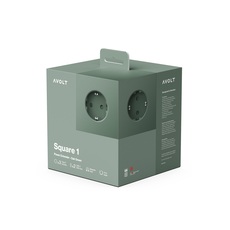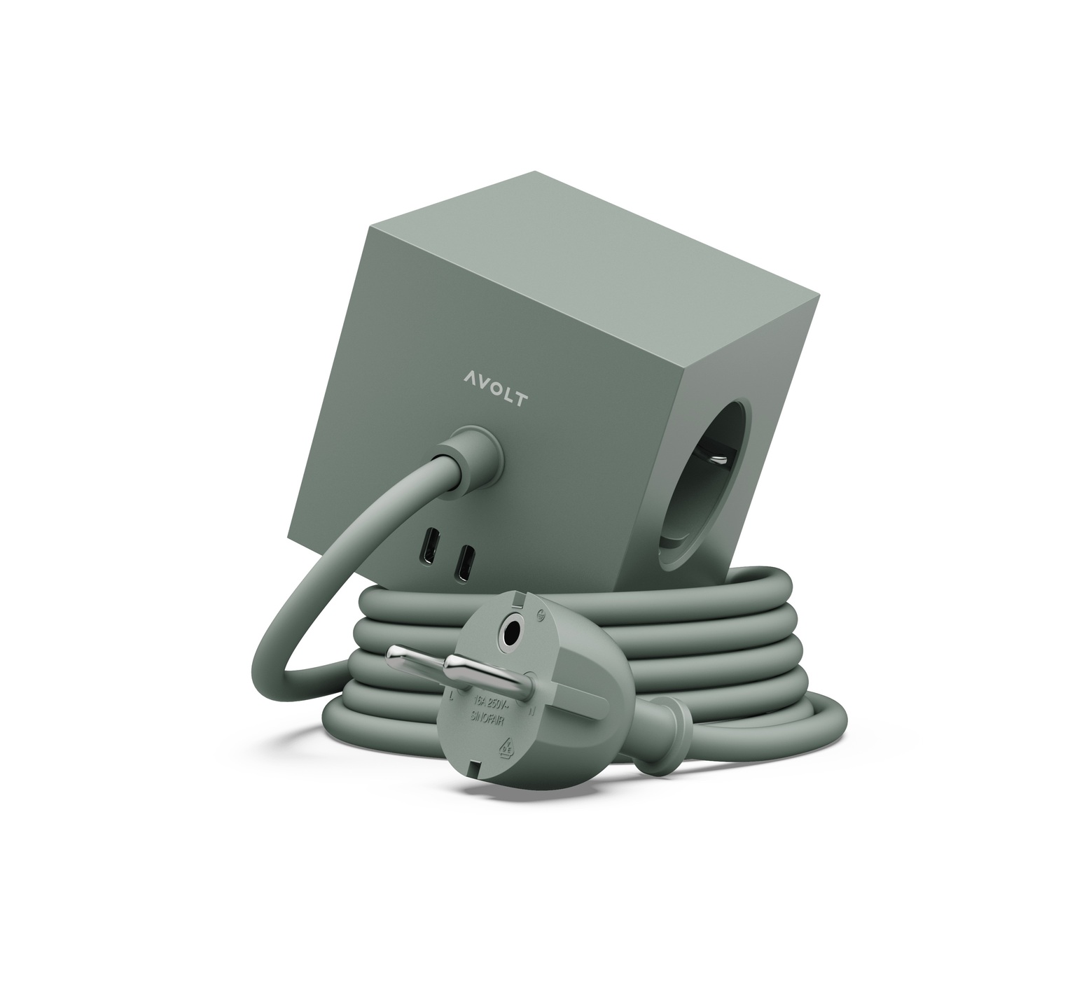 Socket, Square 1, Single 1.8m, Green, Schuko-Socket x3, USB C-Socket x2, L7,6cm, H7,6cm - Avolt