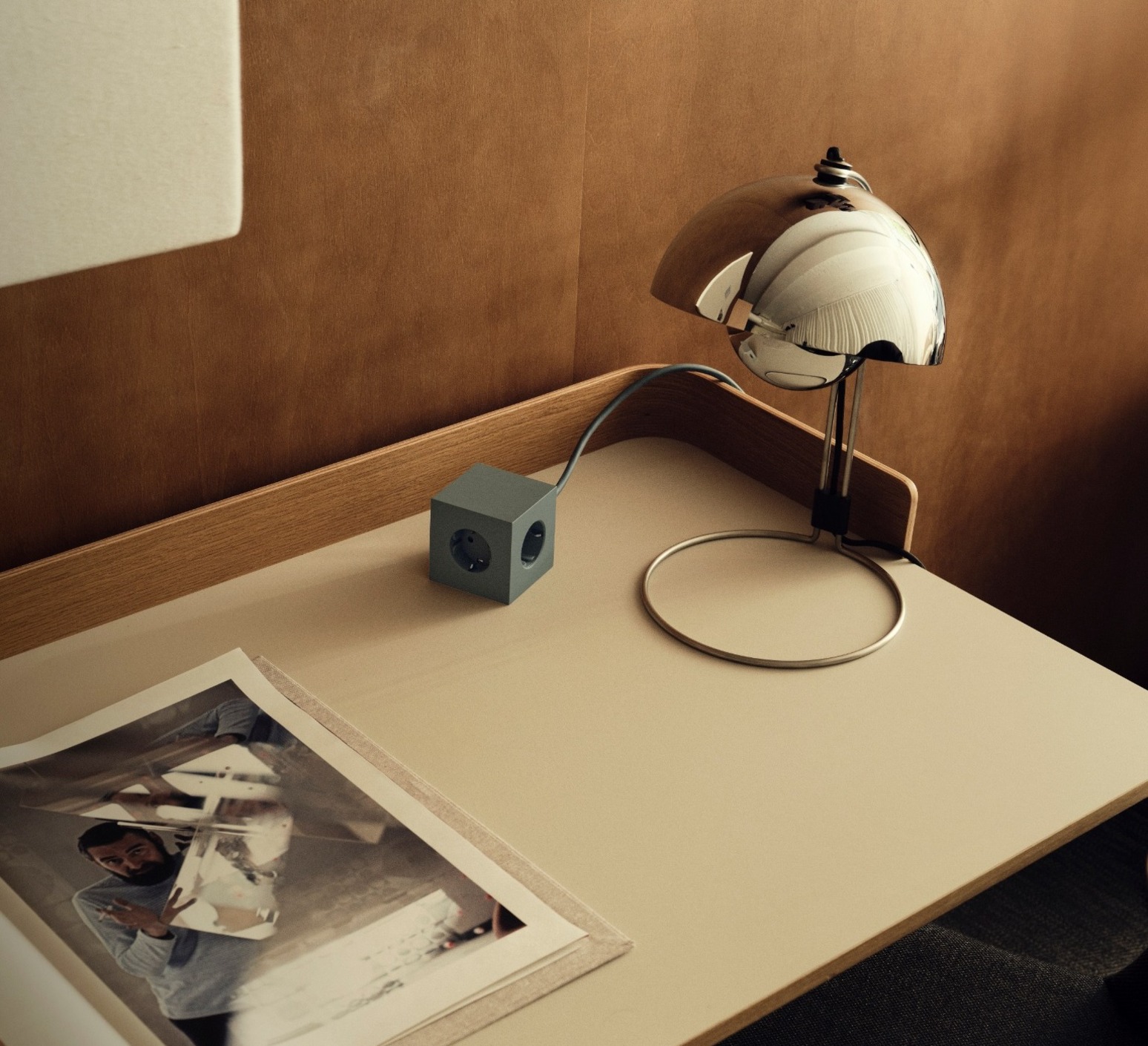 The Square 1 Simple 1.8m plug from the Square 1 collection by Avolt combines three Type F Schuko sockets and two USB-C ports delivering up to 30W to charge your devices quickly.