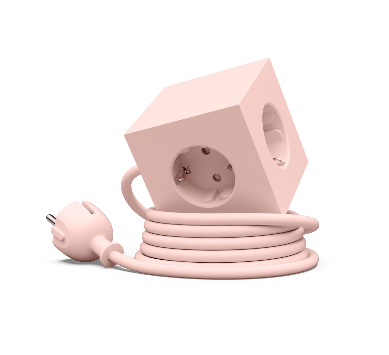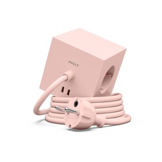 Socket, Square 1, Single 1.8m, Pink, Schuko-Socket x3, USB C-Socket x2, L7,6cm, H7,6cm - Avolt