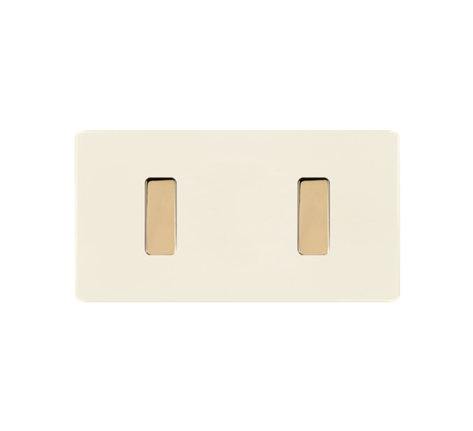 Switch, M, Double horizontal, Ivory, Two-way or pushbutton x1, Two-way or pushbutton x1, Brass lacquered, W15,1cm, H8cm - Modelec