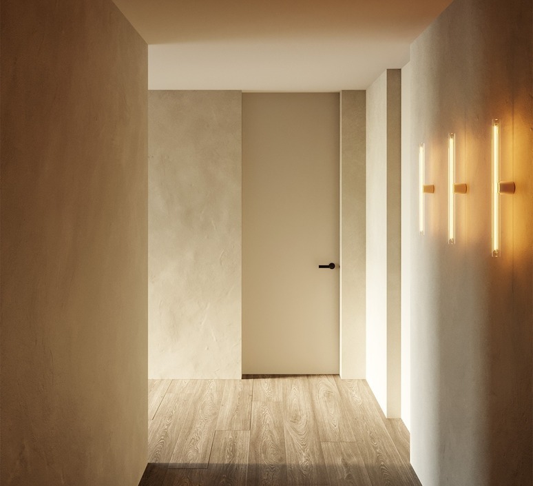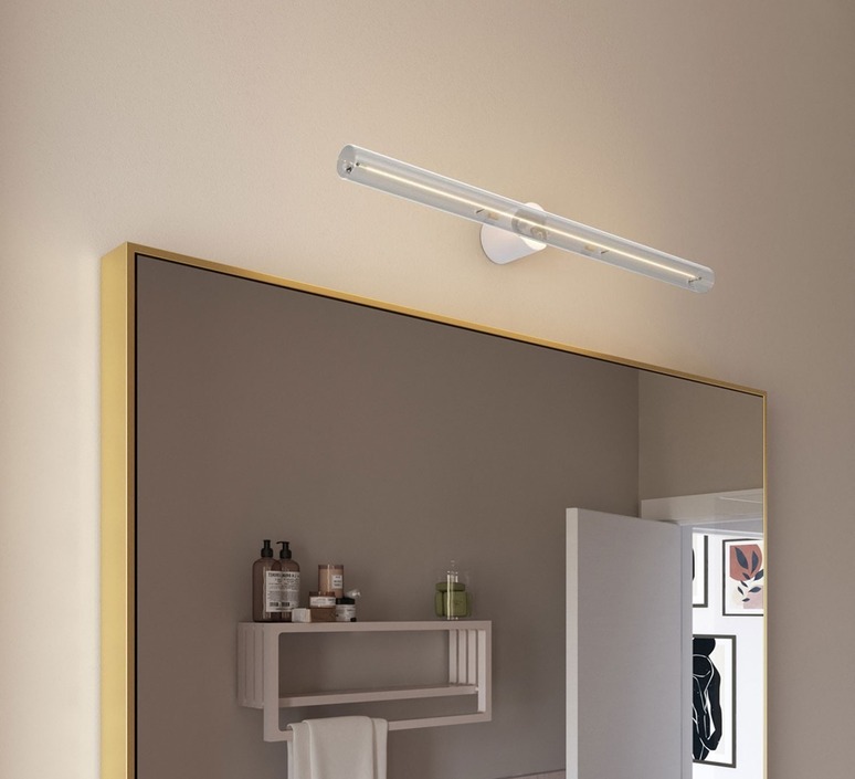The Esse wall light is distinguished by its curved lines and compact format, which allows it to be mounted on the wall without the need for a pavilion, for a clean, contemporary look. Its white finish evokes the softness and elegance of Scandinavian style, ideal for bringing warmth to a bathroom, hallway or workspace. Combined with a 30cm or 50cm linear S14d LED bulb, it creates a graphic, personalized play of light that enhances the architectural details of an interior.