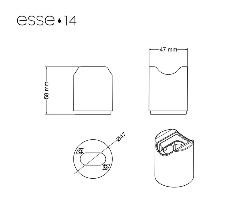 This model features a patented Esse14 lampholder compatible with a 30 or 50cm S14d LED bulb (not included). It offers IP44 waterproofing, suitable for damp or covered outdoor spaces. Max power 20W LED, voltage 220-240V, class II. Dimensions Ø4.7 cm x H5.8 cm. Note: IP44 protection is only guaranteed with 30 and 50 cm bulbs. Screws and plugs not included. Fixed and surface mounting. Not dimmable.
