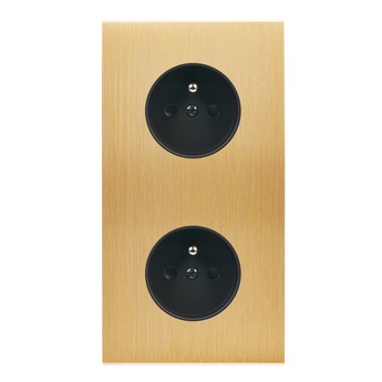 Faceplate, Confidence, Double vertical, Brushed brass, Socket-2P+T ...