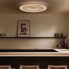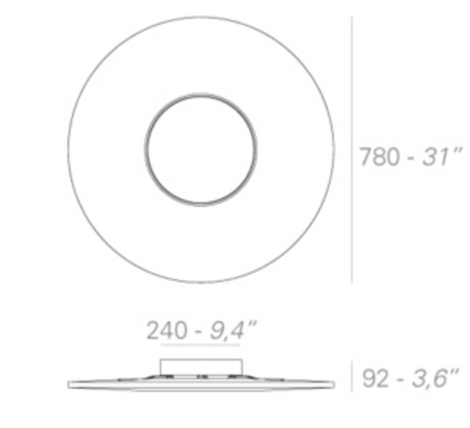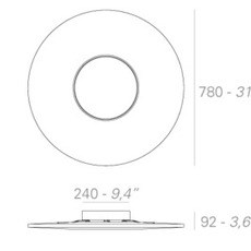 The Iris ceiling light has a diameter of 78 cm and a height of 9.2 cm. The 2700K, 7350 lm light source is included.