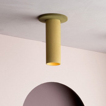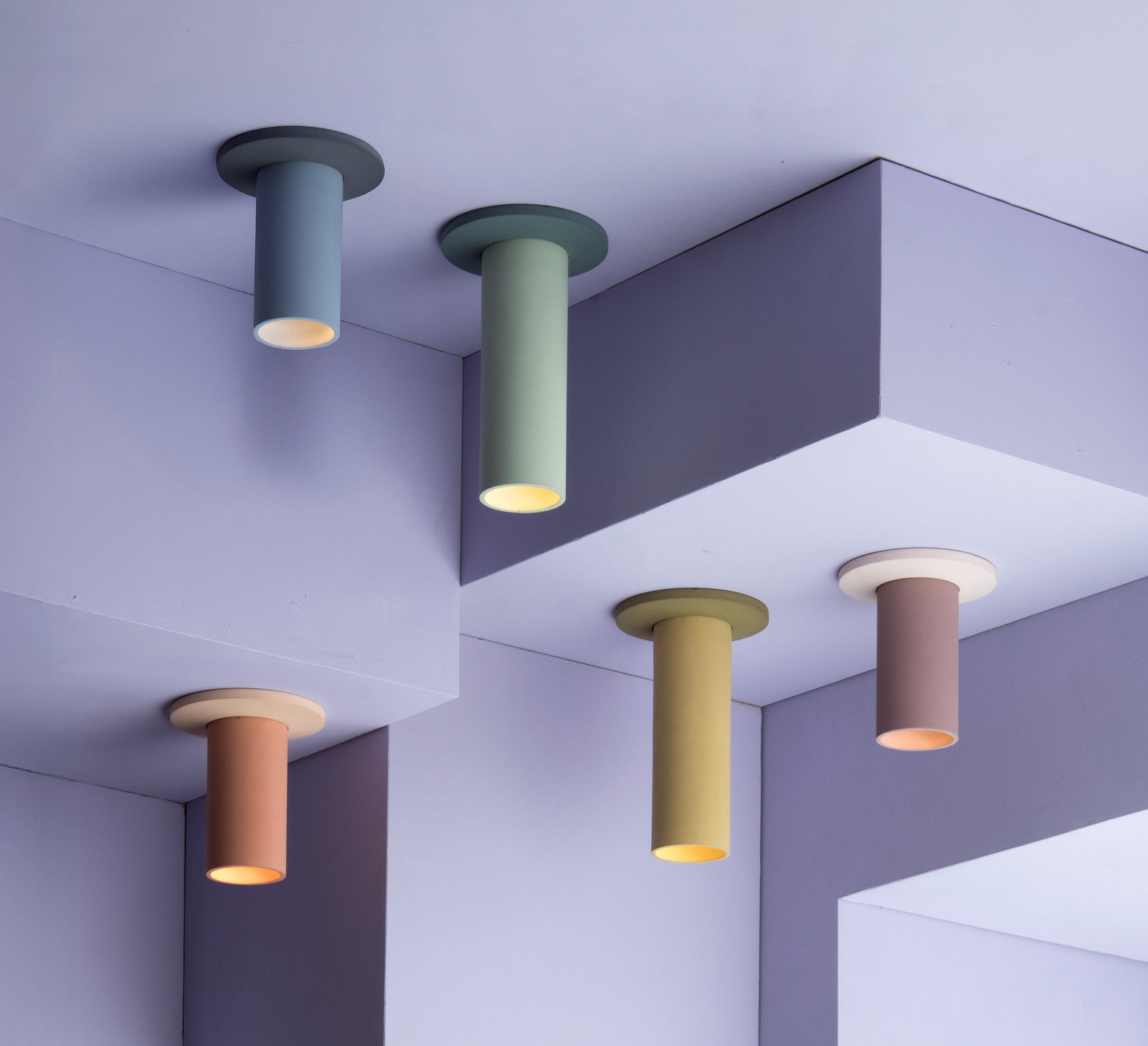 Installed on its own or as part of a composition, this ceiling light offers a discreet yet assertive presence, highlighting the raw material of concrete and the richness of Plato Design's signature colored finishes.