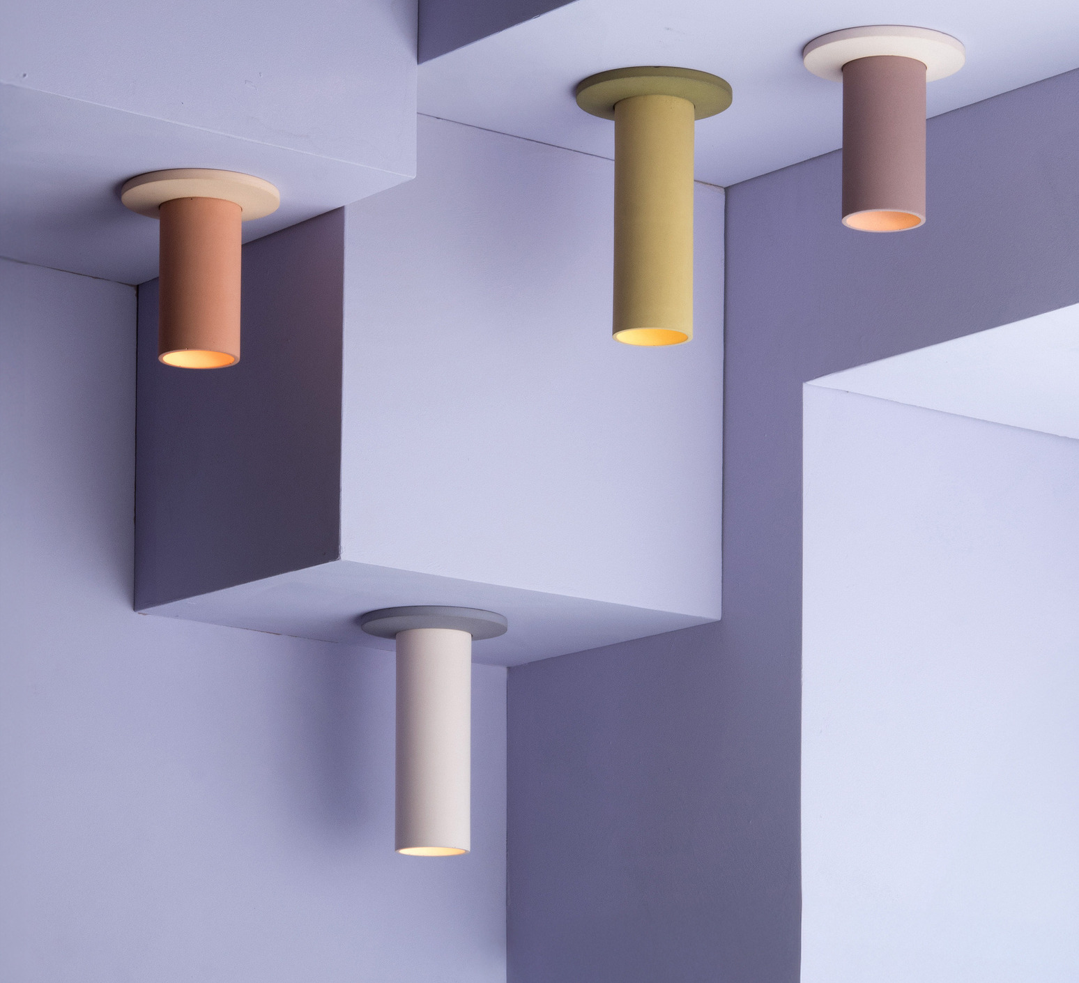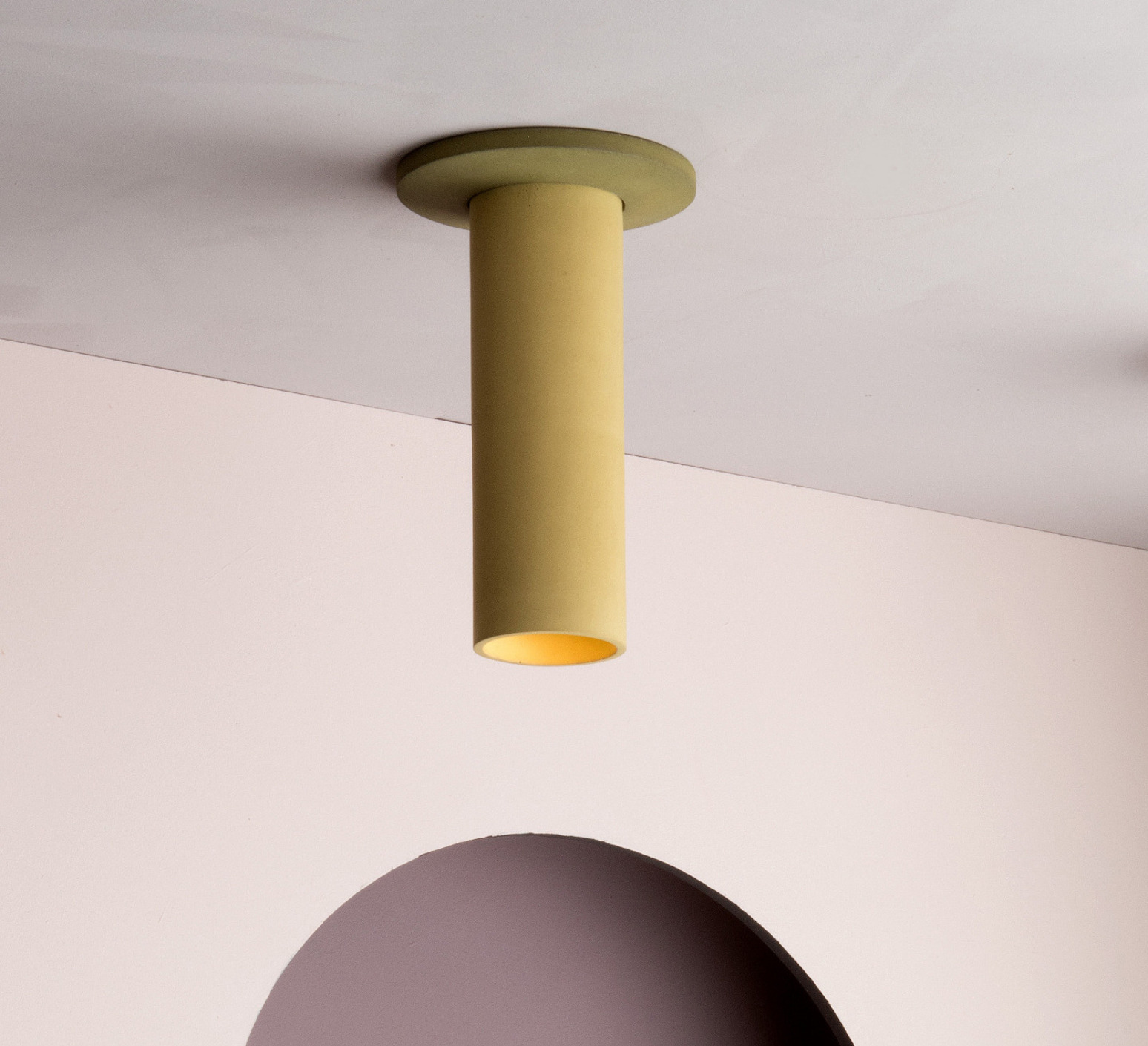 Suitable for a wide range of contemporary interiors, from living rooms to hallways, bedrooms and reception areas, this ceiling fixture highlights the artisanal quality of concrete and Plato Design's own subtle chromatic palette.