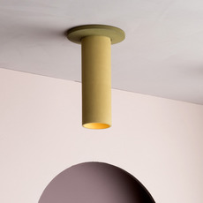 The body's mustard yellow hue adds a warm, energetic touch, while its khaki base provides a deep, refined visual base. Thanks to its compact dimensions (Ø 6.5 cm × H 21.5 cm), the Alice ceiling light is ideal for structuring the lighting of a space without weighing it down visually. It can be installed on its own to highlight a single point of light, or in multiple compositions for a unique graphic effect.