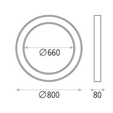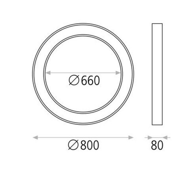 The Aliso 80 consumes 75 W to deliver around 5800 lumens, with an aperture angle of around 90°, offering a powerful, uniform light output. It has a profile height of 8 cm and a diameter of 80 cm.
