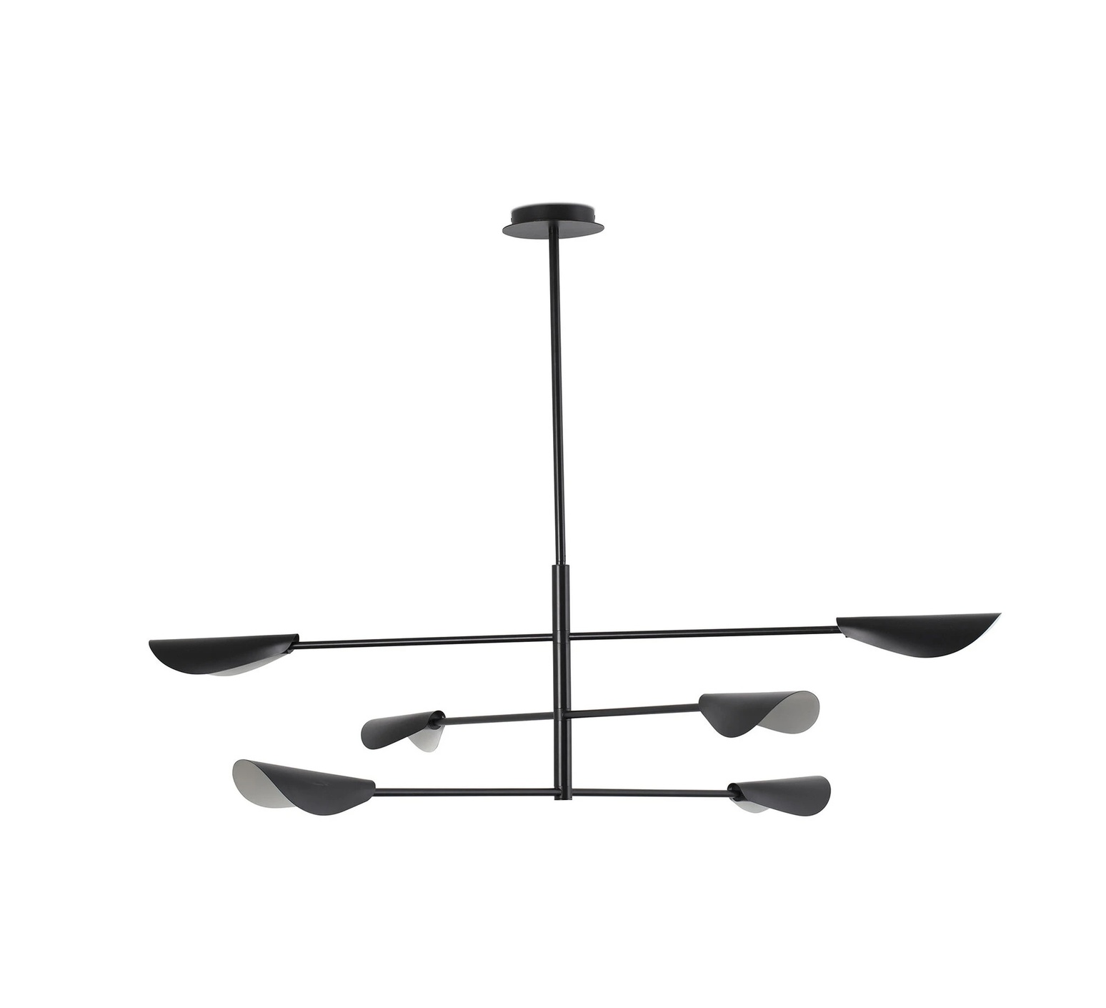It measures 136.8cm in diameter and 27.9cm in height. The directional reflector allows the light direction to be adjusted to the specific needs of each space, providing direct or indirect lighting: 350° horizontal orientation and 90° vertical orientation. Although the light source is not included, the Liggera ceiling light must be combined with six G9 Led bulbs, each with a maximum power of 6W, for optimum brightness.