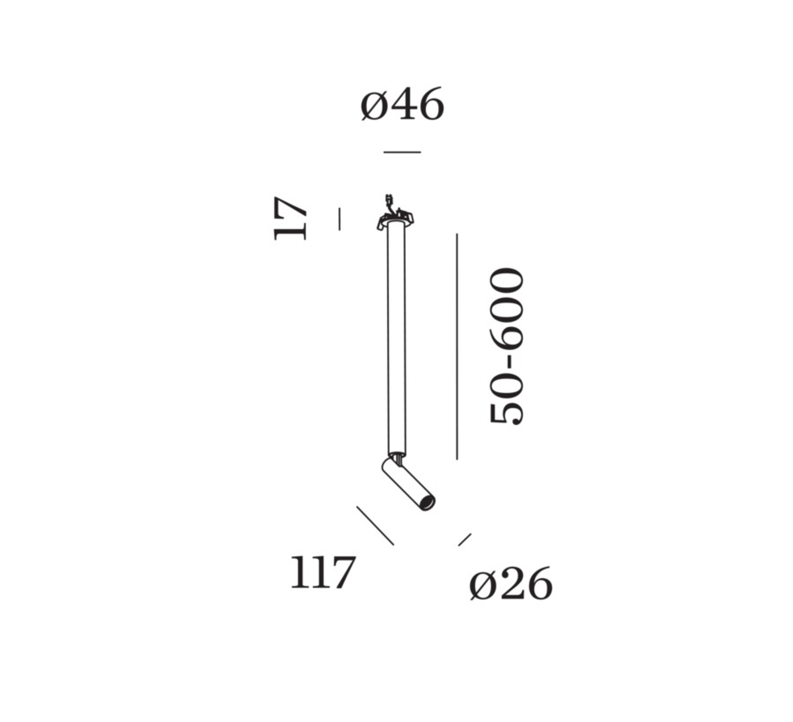 The luminaire measures 60cm in height and 2.6cm in diameter.