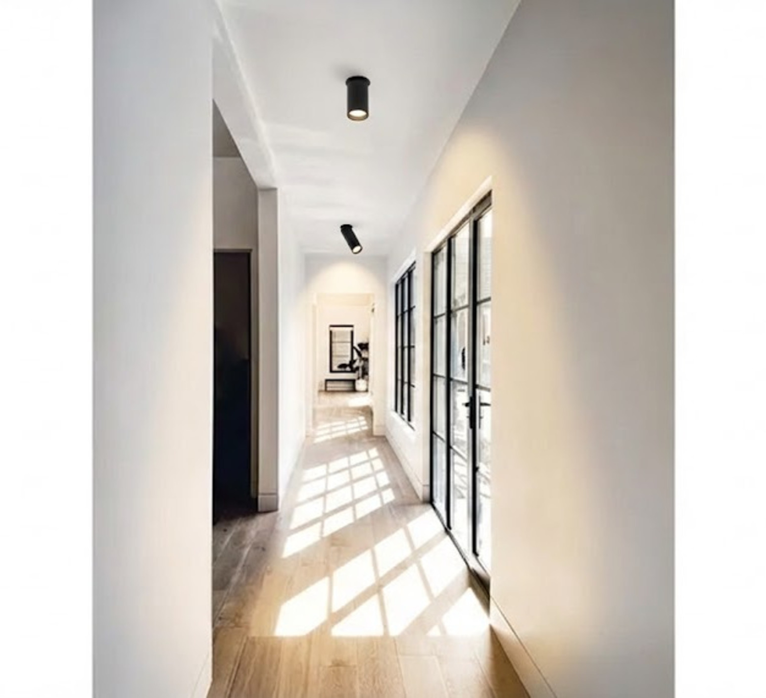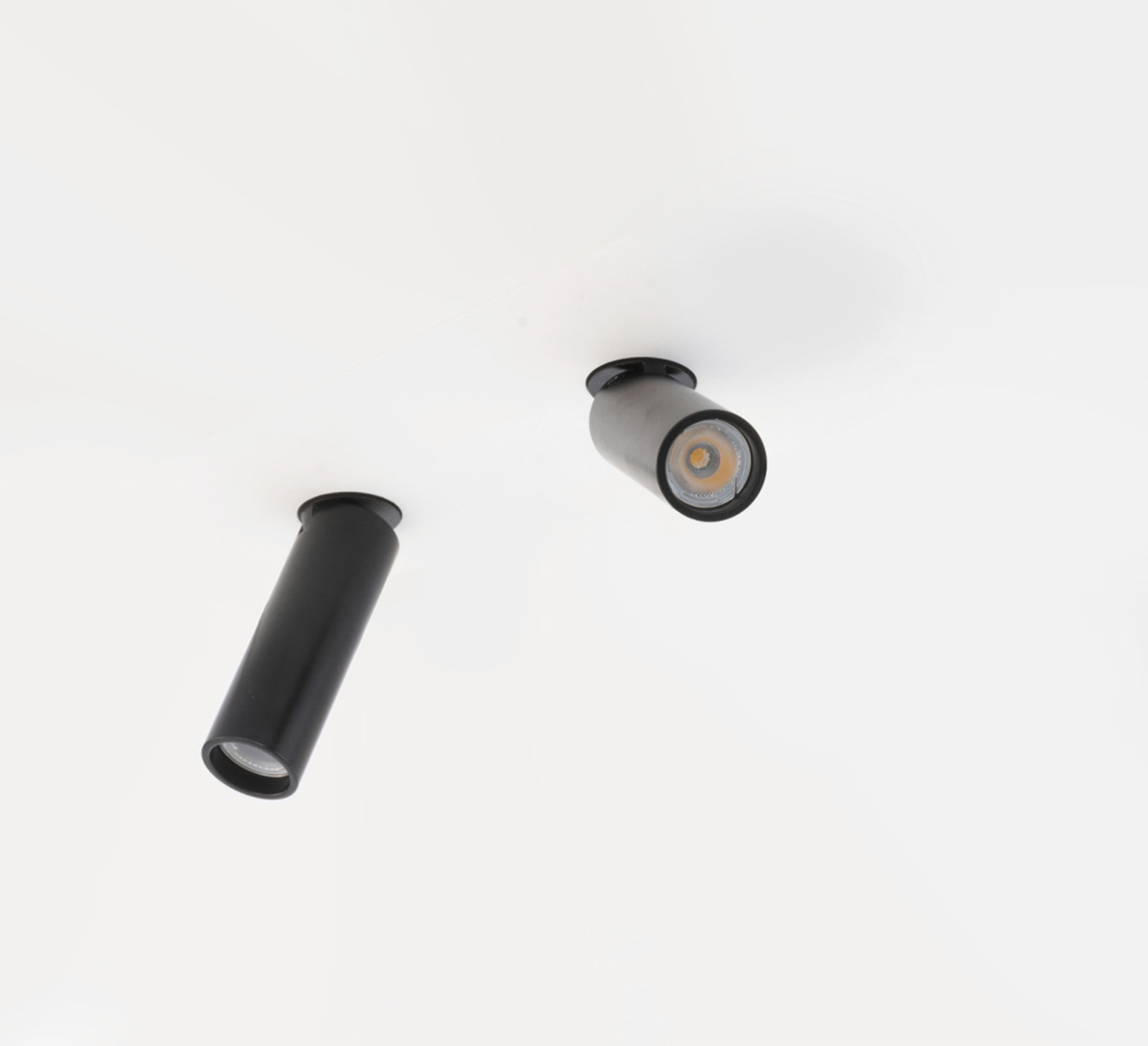 Its cylindrical design in white aluminum, with a discreet diameter of 2 cm and a height of 11.5 cm, adapts easily to interiors with an industrial or contemporary style. Its minimalist shape allows it to blend into a ceiling while adding a graphic touch. Installed on its own or as part of a composition, it structures space and highlights targeted areas such as a corridor, office or reception area.