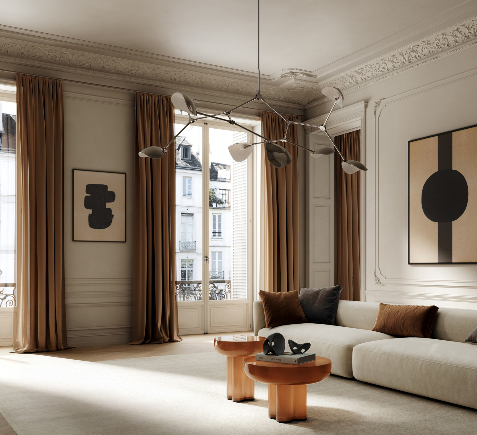Inspired by the fluid movements of a stingray, it transforms space into a focal point where light and form interact.