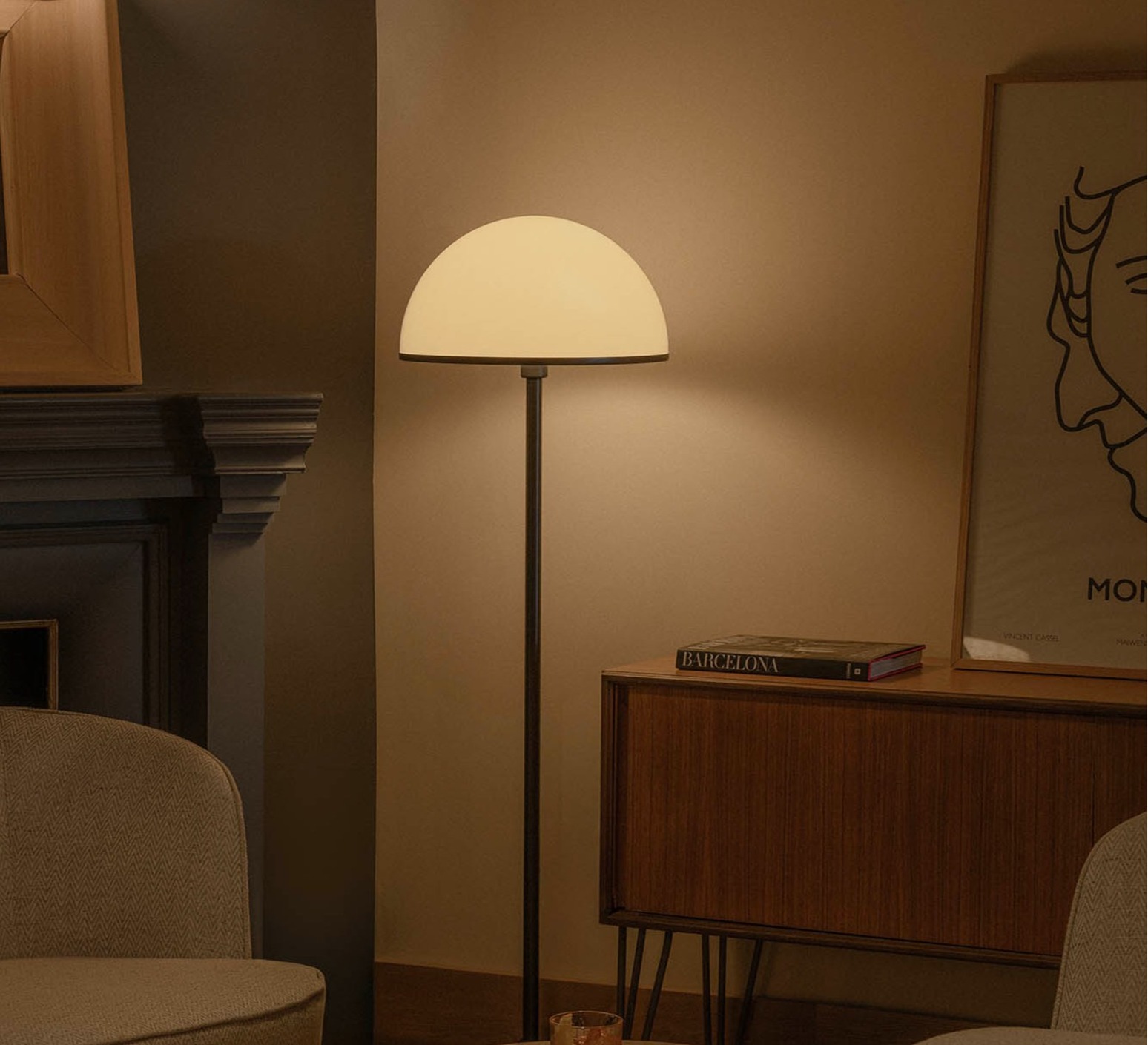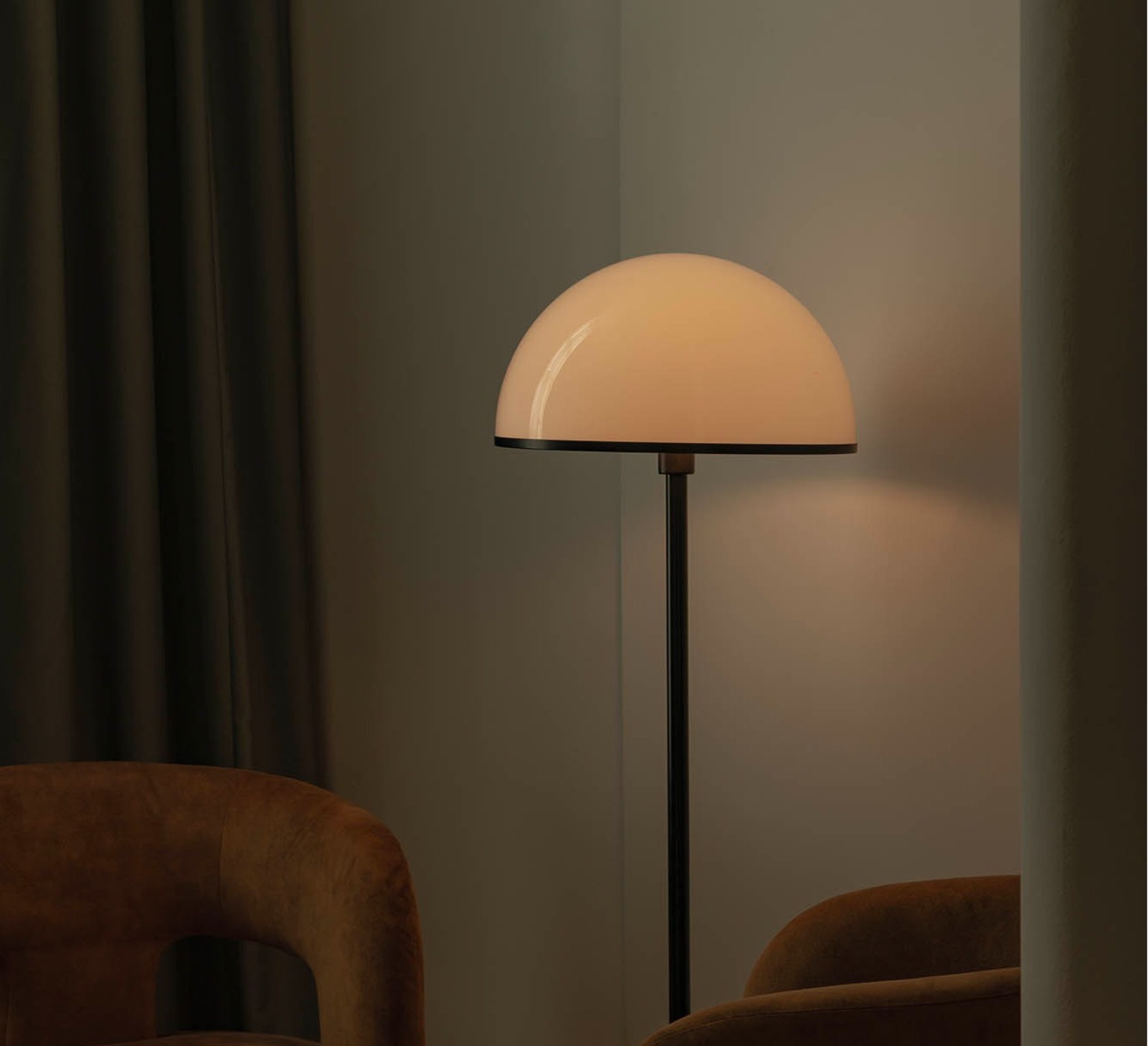 Dôme, a designer floor lamp that combines contemporary sobriety with a warm ambience.