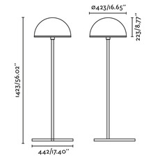 Dôme measures 142.3 cm high with a 42.3 cm diameter shade. It works with an E27 bulb (not included, but available as an essential accessory). Its 2 m power cable allows great freedom of installation. S