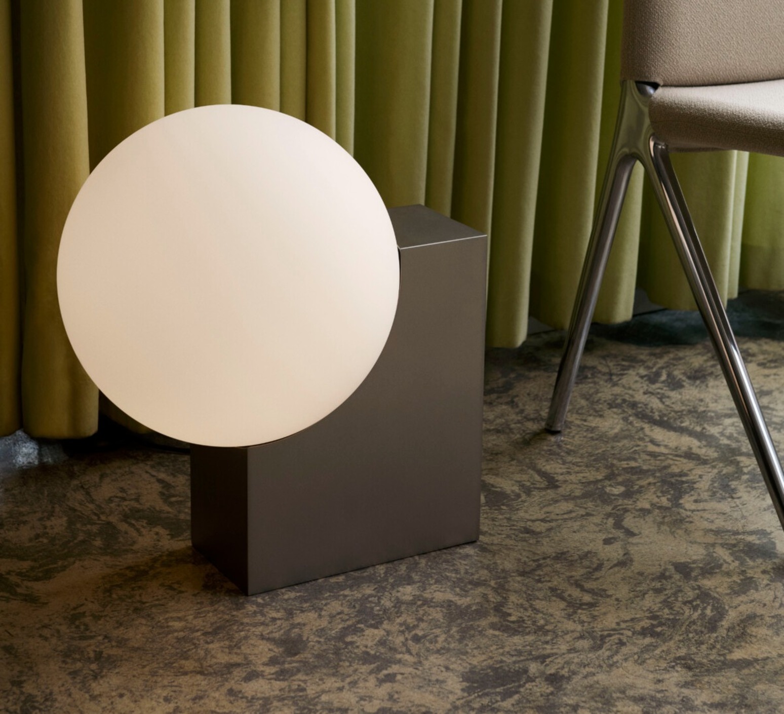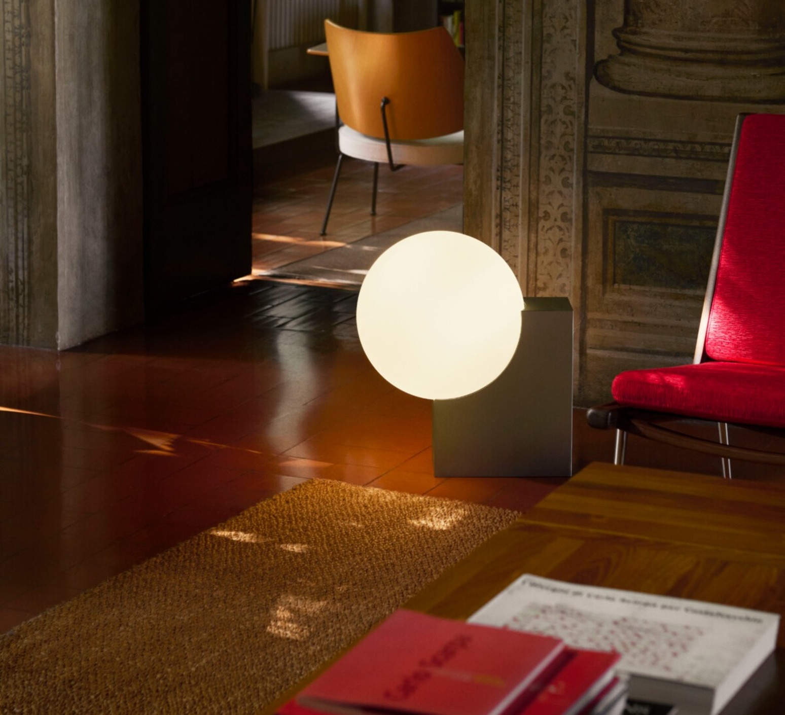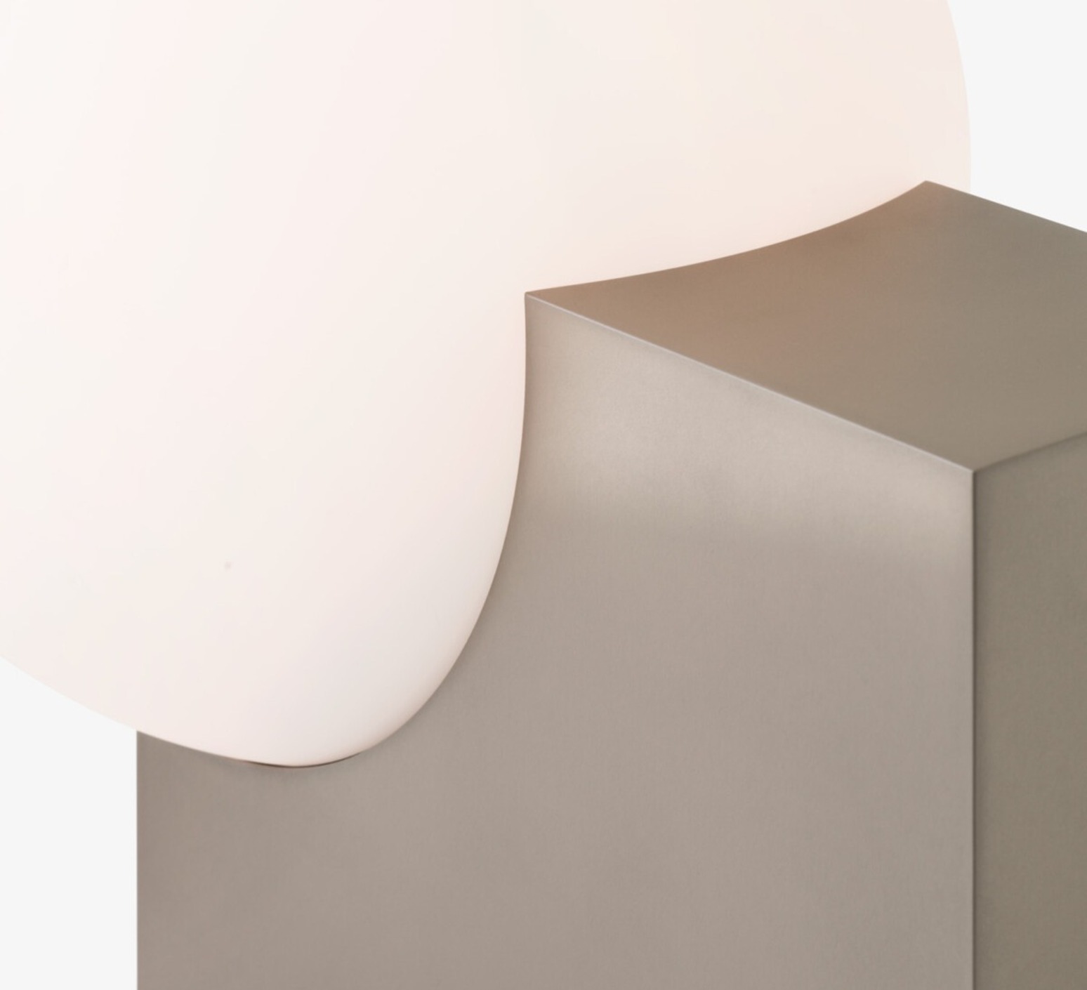 This luminaire represents a beautiful fusion of two classic geometric shapes: the sphere and the rectangle. This superposition of shapes gives a very elegant and refined look to this lamp.