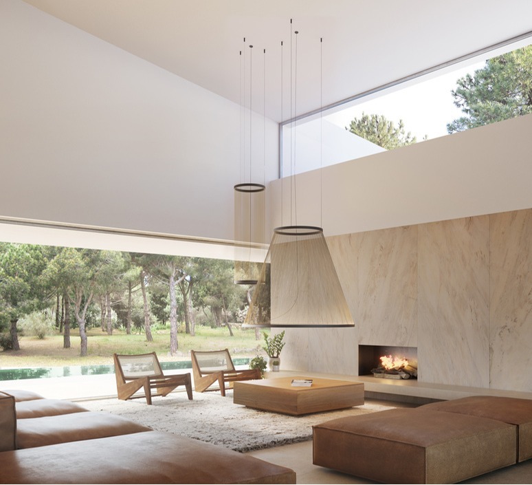 Designer Umut Yamac presents the Array collection: a series of luminous suspensions characterized by variable proportions. This collection represents an innovative technical exploration, highlighting the creative potential of wires to shape suspended light sculptures that are both light and dynamic. Consisting of a series of technical wires stretched between two aluminum rings, Array offers a variety of conical and cylindrical silhouettes that can be arranged to create a captivating installation.