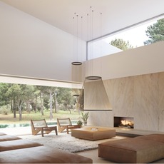 The strategic placement of the wires creates translucence and volume, while the effect of superimposition gives the illusion of movement. Suspended above, Array projects a pleasant light emitted by an invisible source concealed in the lower ring. At the same time, indirect light is diffused upwards, creating a gradation of colors and enveloping the space it occupies rather than invading it.