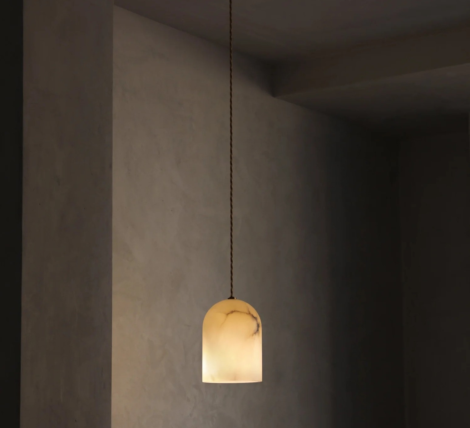Thanks to its minimalist design and warm light, it creates a welcoming, refined ambience, while highlighting the textures and objects that surround it. Its natural alabaster finish diffuses a soft, enveloping light, ideal above a table or kitchen island to catch the eye without being intrusive.