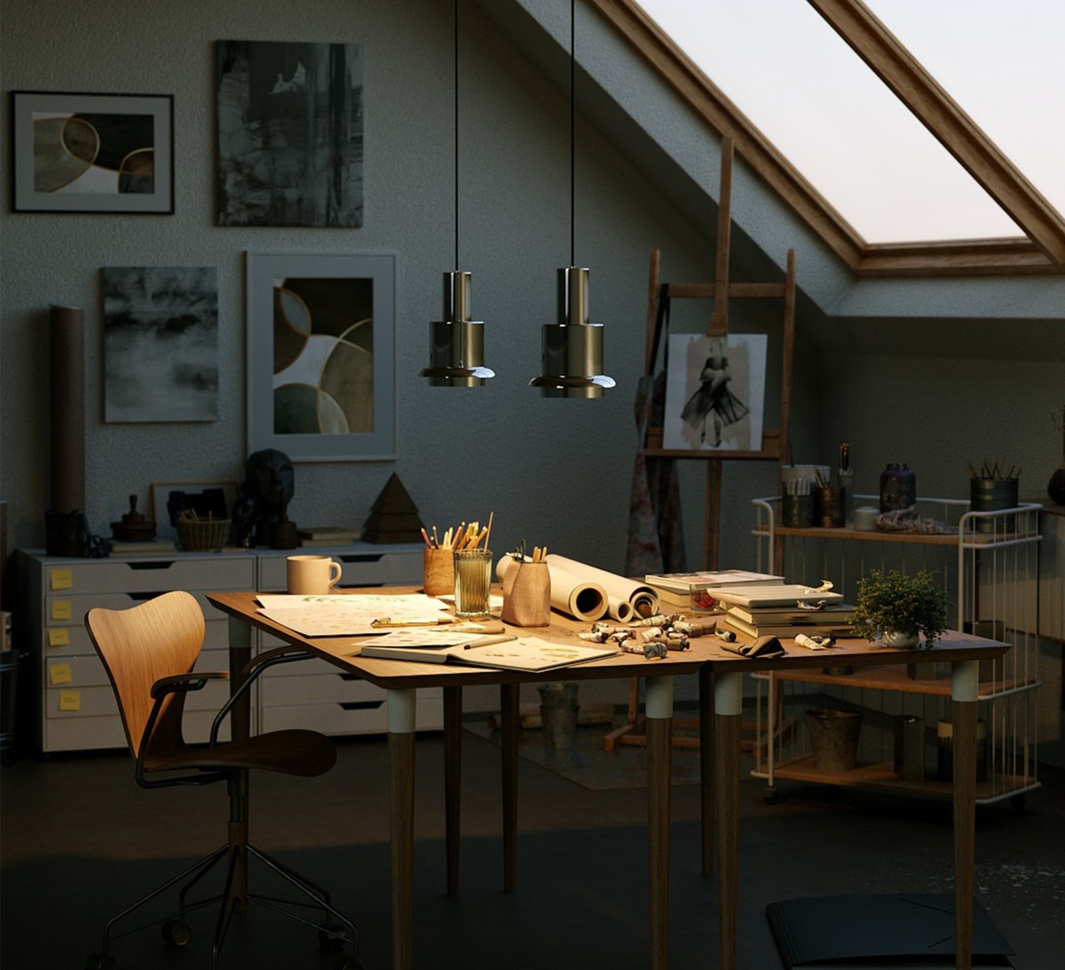 Originally conceived by the designer for his own studios on the Buttes-Chaumont in Paris, this emblematic piece reflects his quest for a perfect balance between rigor and simplicity.