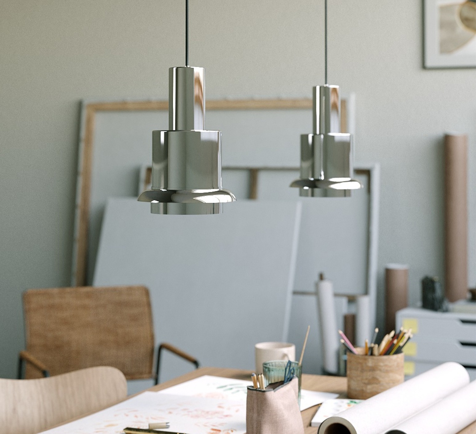 Designed to suit all interiors, Chaumont lends itself to a multitude of decorative scenarios: suspended in a cluster above a dining table, aligned in series on a worktop, or even as a duo above bedside cabinets. The ring is interchangeable and available in a range of colors.