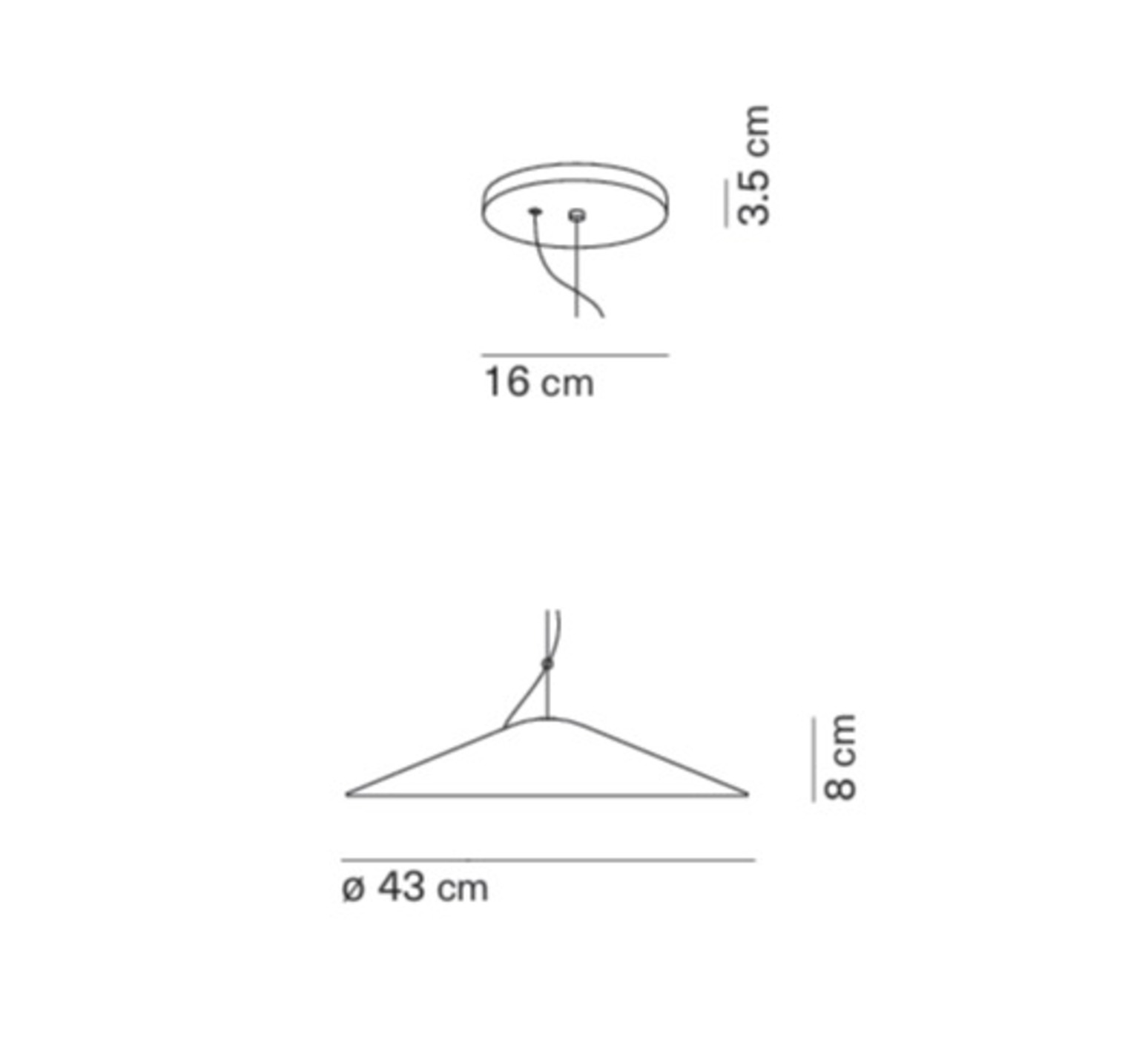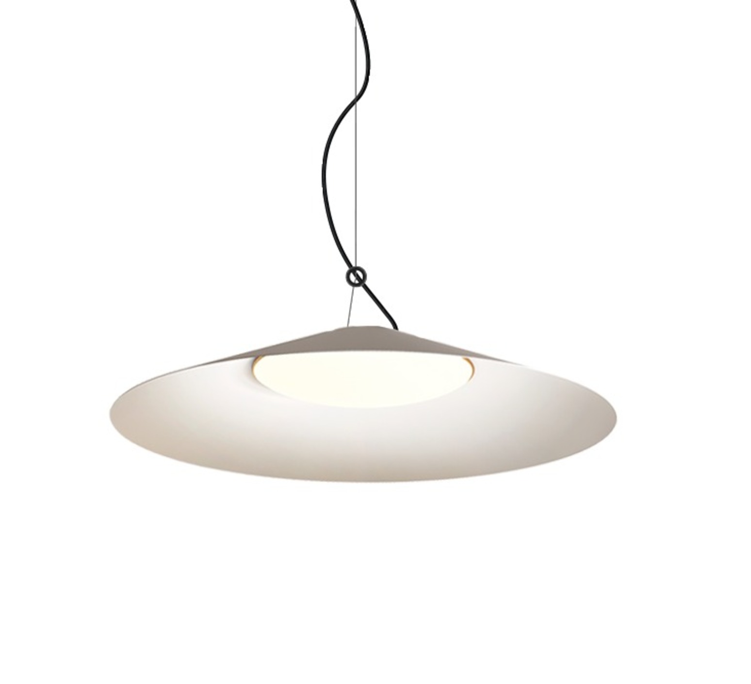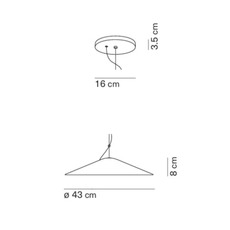 Kate 43 features a diffuser that can be tilted, held in suspension by a taut cable punctuated by a ring that frees the orientation of the light. Its slender conical shape, here in a white finish, adds a controlled graphic presence without weighing down the space. Installed on its own above a table or as a composition in a living room or professional space, it structures the volume while providing direct, diffused light, ideal for accompanying everyday uses with precision.