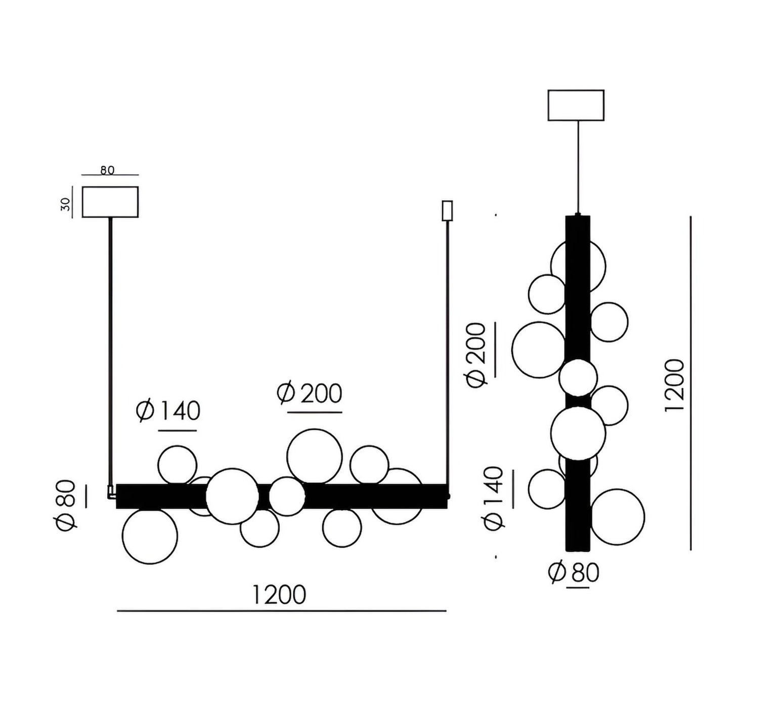 Lera finds its natural place above a large table, in a corridor or meeting space. The regular repetition of luminous globes gives rhythm to the space and enhances circulation while diffusing even light. Its sleek design blends easily with minimalist or more classic decors, especially when accompanied by elegant metallic finishes.