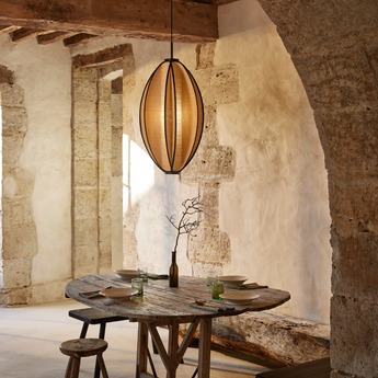 To sublimate the Solis suspension in your home, choose a location where its subdued light can create a soothing, warm atmosphere. Installed above a dining table, in a living room or bedroom, it brings a feeling of softness and comfort, while highlighting the beauty of natural materials.