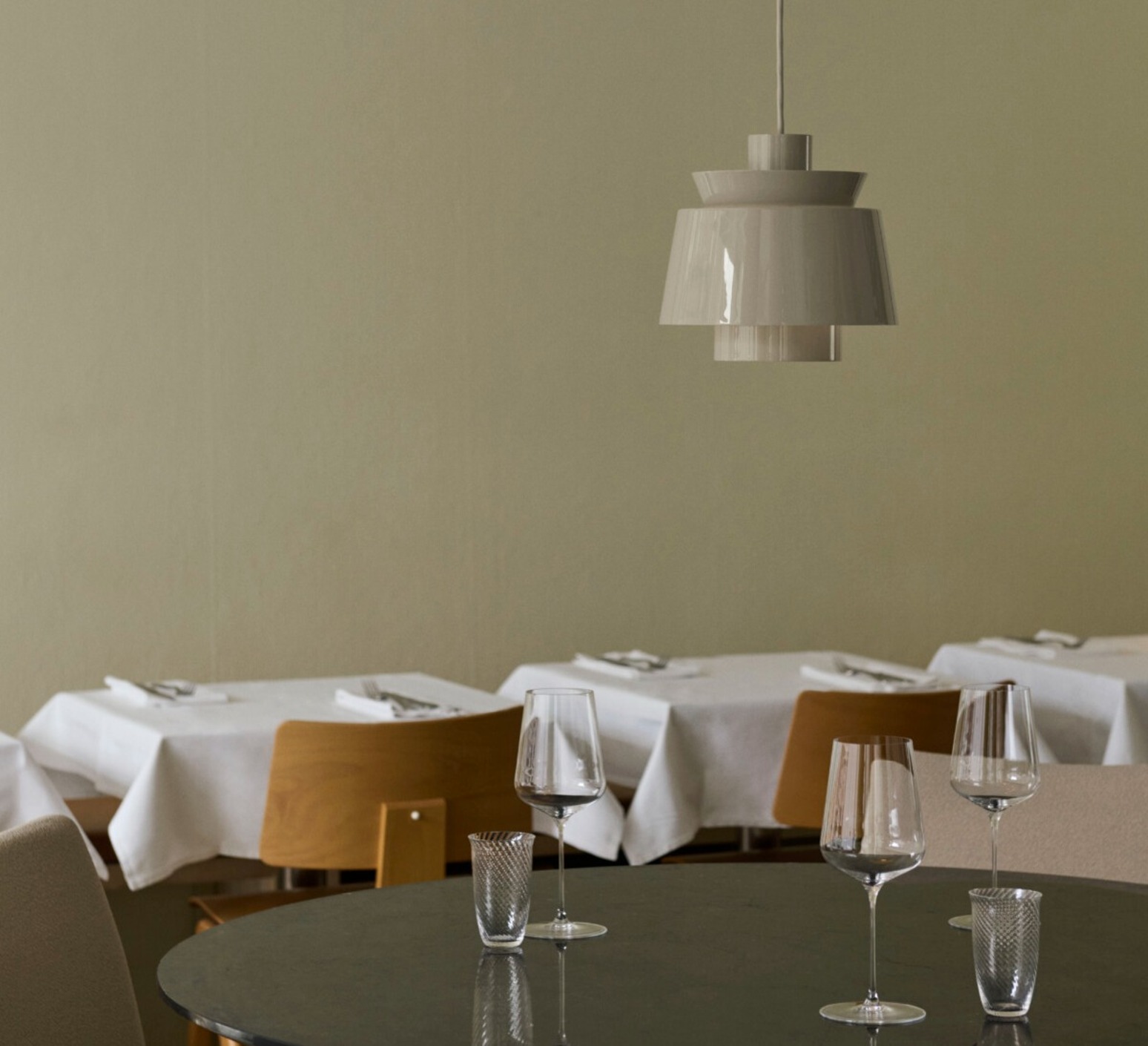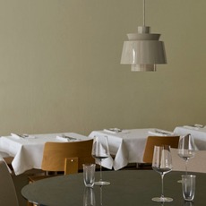 The Utzon luminaire, with its simple, round shapes, refers to ocean liners and the waves of the North Sea. It has become a design icon, and has stood the test of time! This retro-look suspension luminaire is made of bent lacquered metal, and its two downward-facing outlets ensure a high-quality lighting effect.