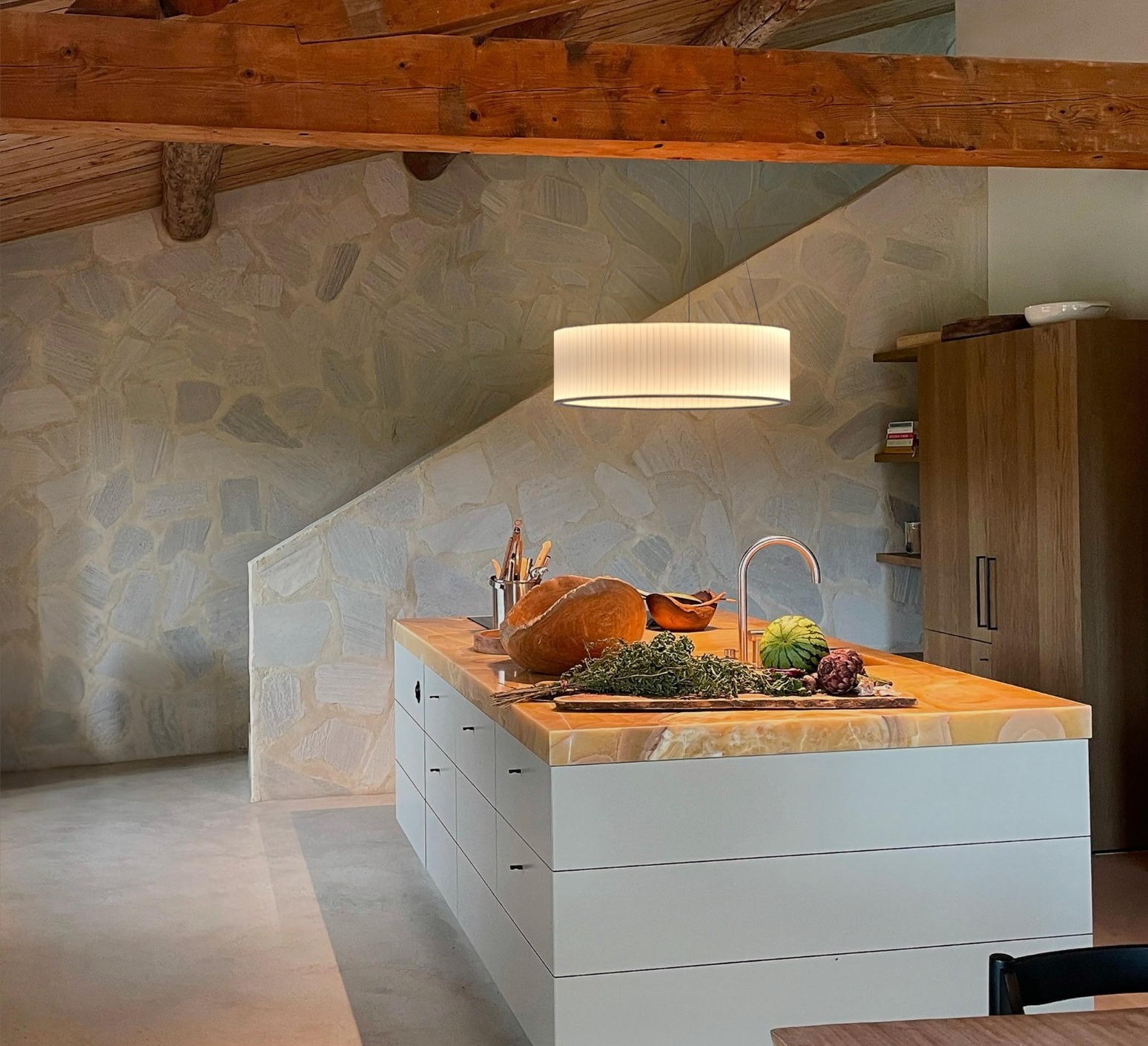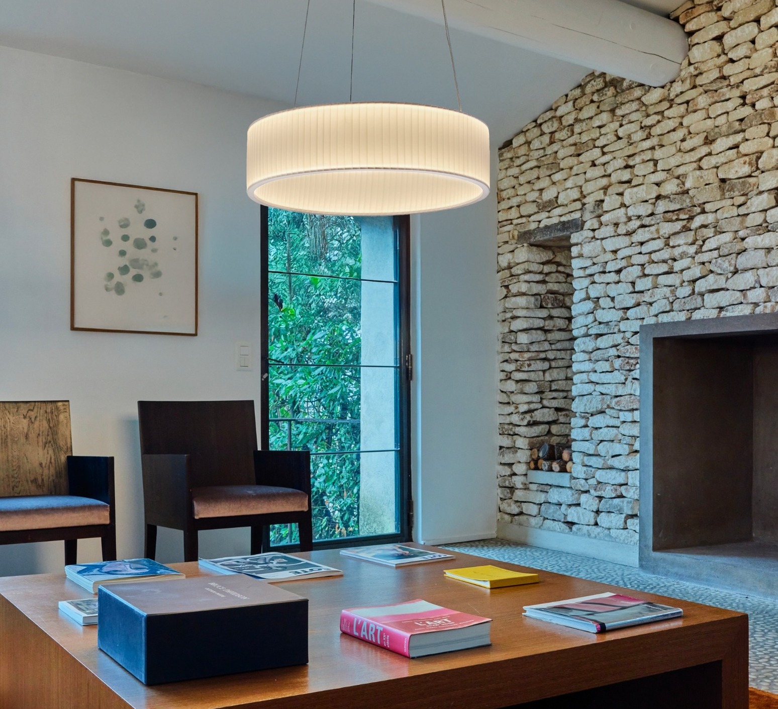 Ronde is a contemporary reinterpretation of the lampshade theme, with a ribbon structure. The lampshade is hollowed out to evoke the lightness of smoke rings. It is both decorative and minimalist. Its simple geometry dresses up the space and its finesse encourages aerial compositions. Its lightness and finesse make it a decorative element as elegant as it is functional.