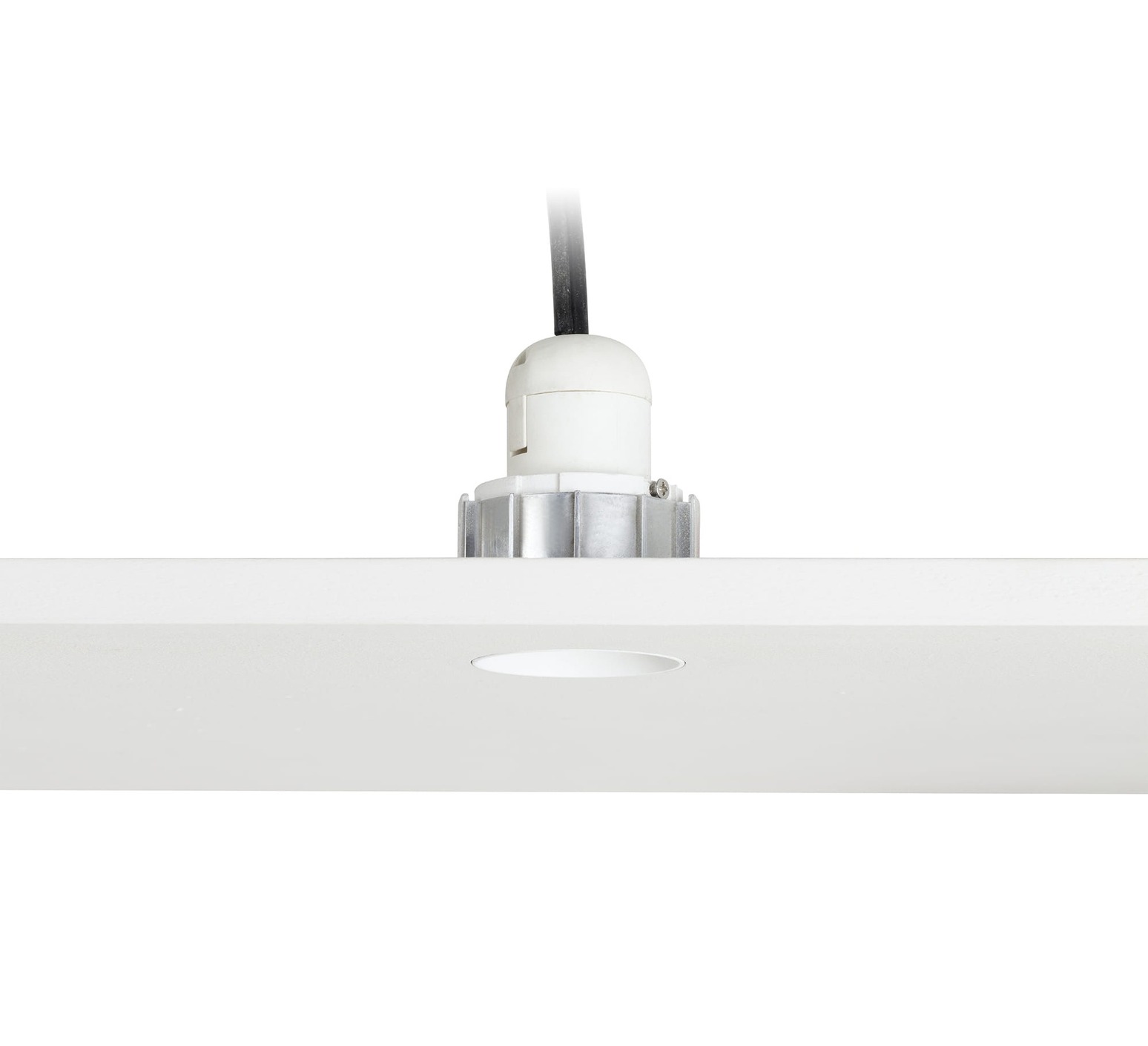 Its round, trimless design in matt white aluminum, combined with a clear glass diffuser, evokes a discreet yet elegant lighting solution that enhances architecture without distracting from the surrounding décor. This spotlight reflects the identity of Faro, where simplicity of form meets luminous performance in contemporary spaces.