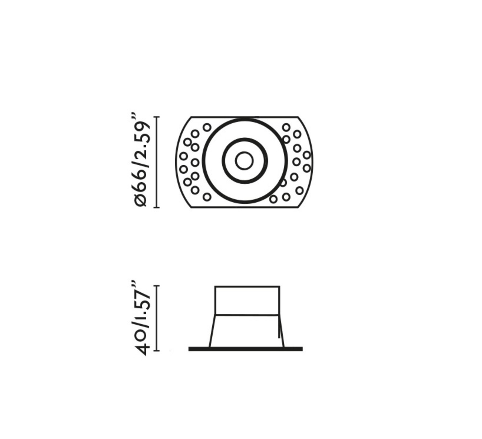 Flac measures 6.6 cm in diameter and 4 cm in height. Its light source (1 x GU10) is not included.
