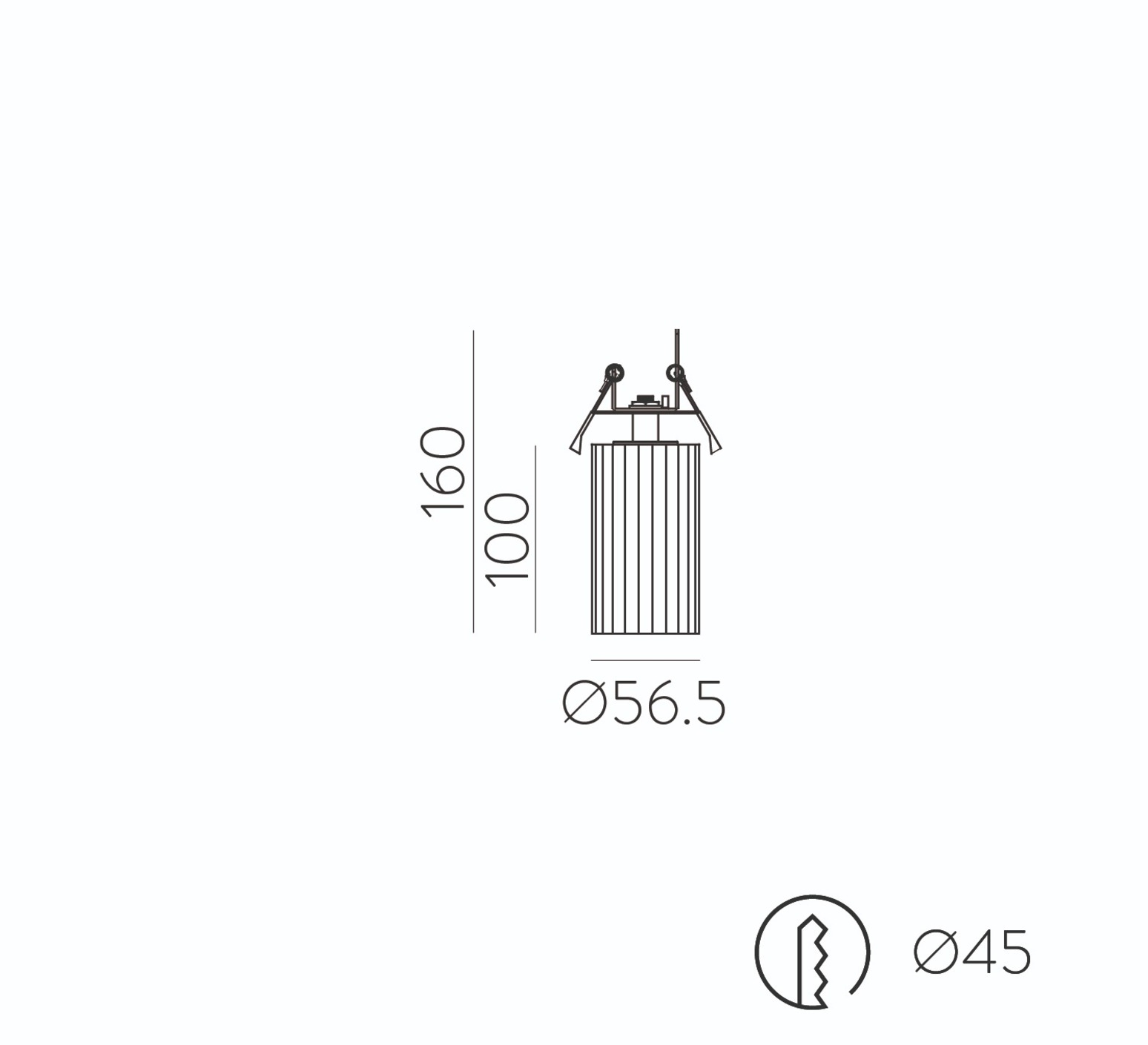 The ceiling light measures 5.65cm in diameter and 10cm in height.