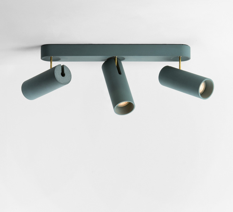 With its 3 tubular silhouettes (L45 cm x H21 cm) and teal blue finish, Argia Maxi asserts a strong, sculptural presence. Its combination of concrete and brass gives it a raw yet elegant aesthetic. It's ideal for use in a living room, hallway or above a piece of furniture to emphasize space with character.
