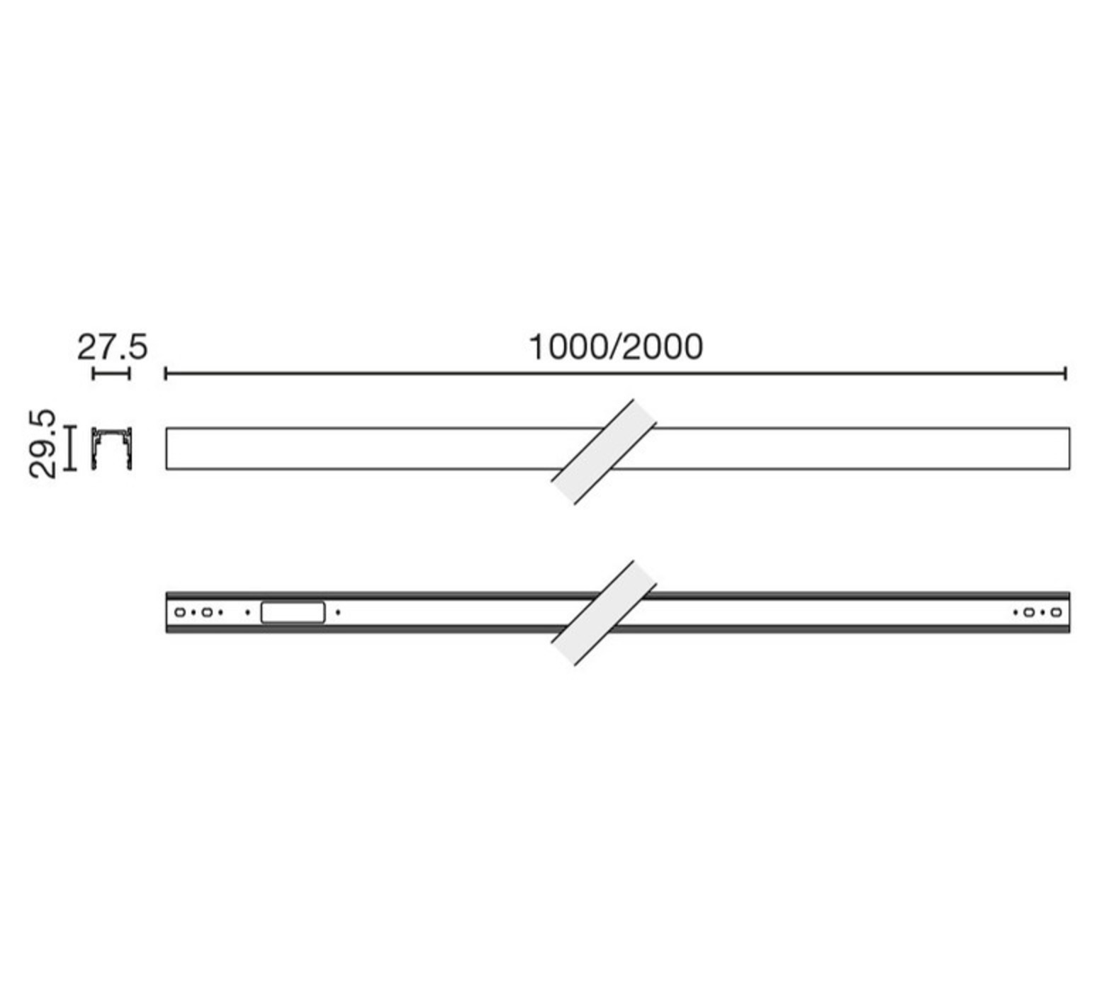 NESO SLIM is a family in the technical range that you can create according to the needs of your project or company. It measures 2m. This track is designed for use with DALI-capable spotlights.