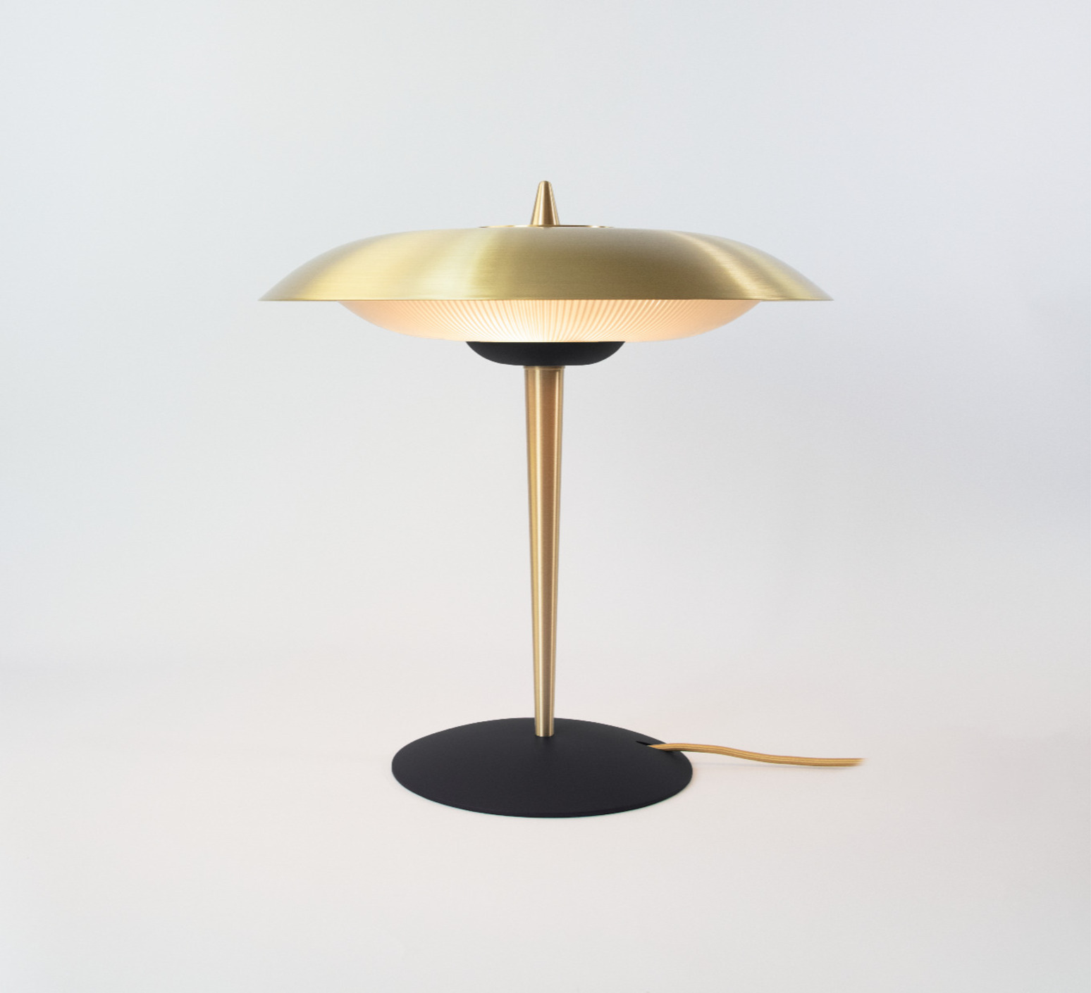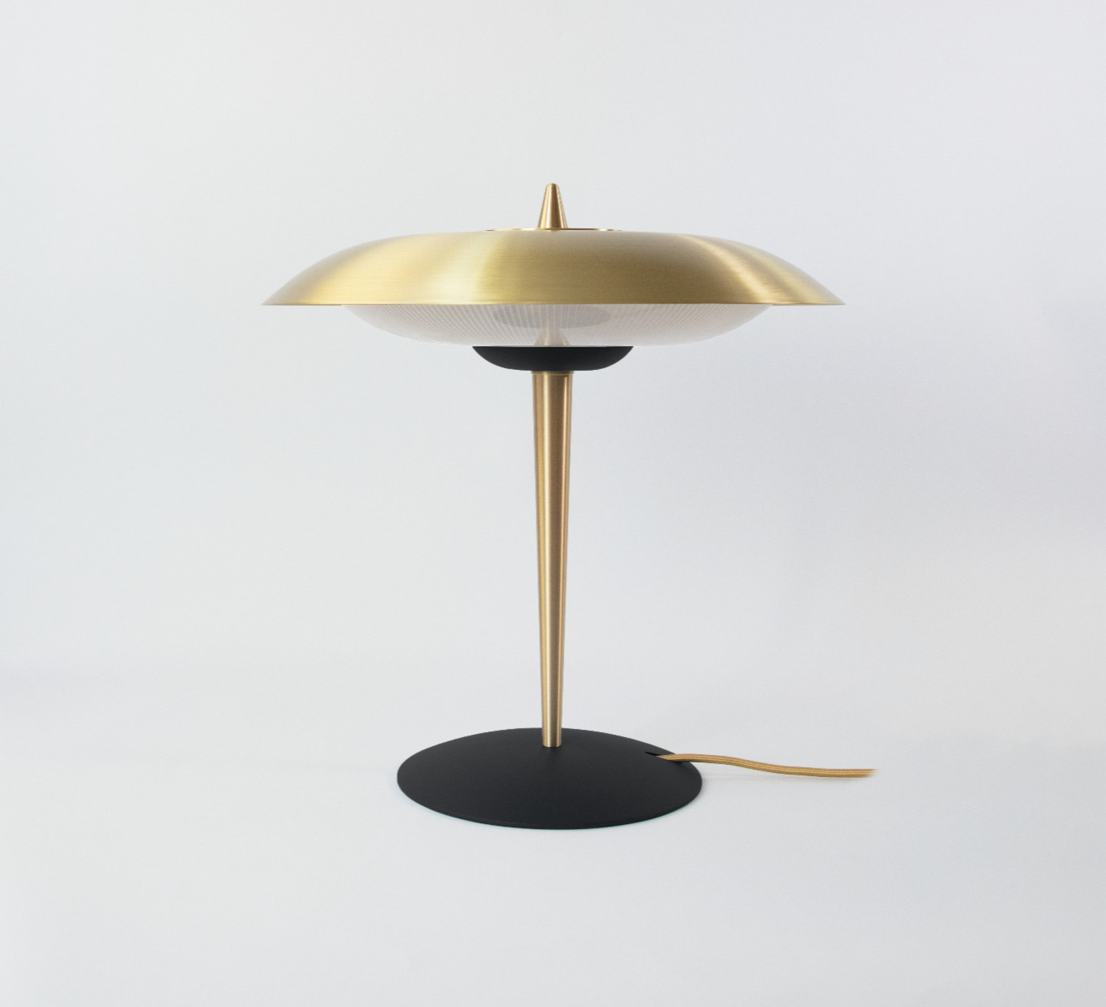 The Durant table lamp from Bert Frank elegantly combines brushed brass and black for a resolutely chic, contemporary look.